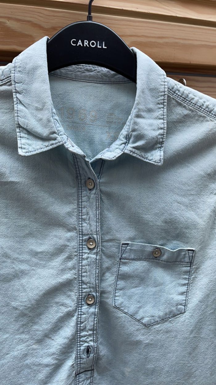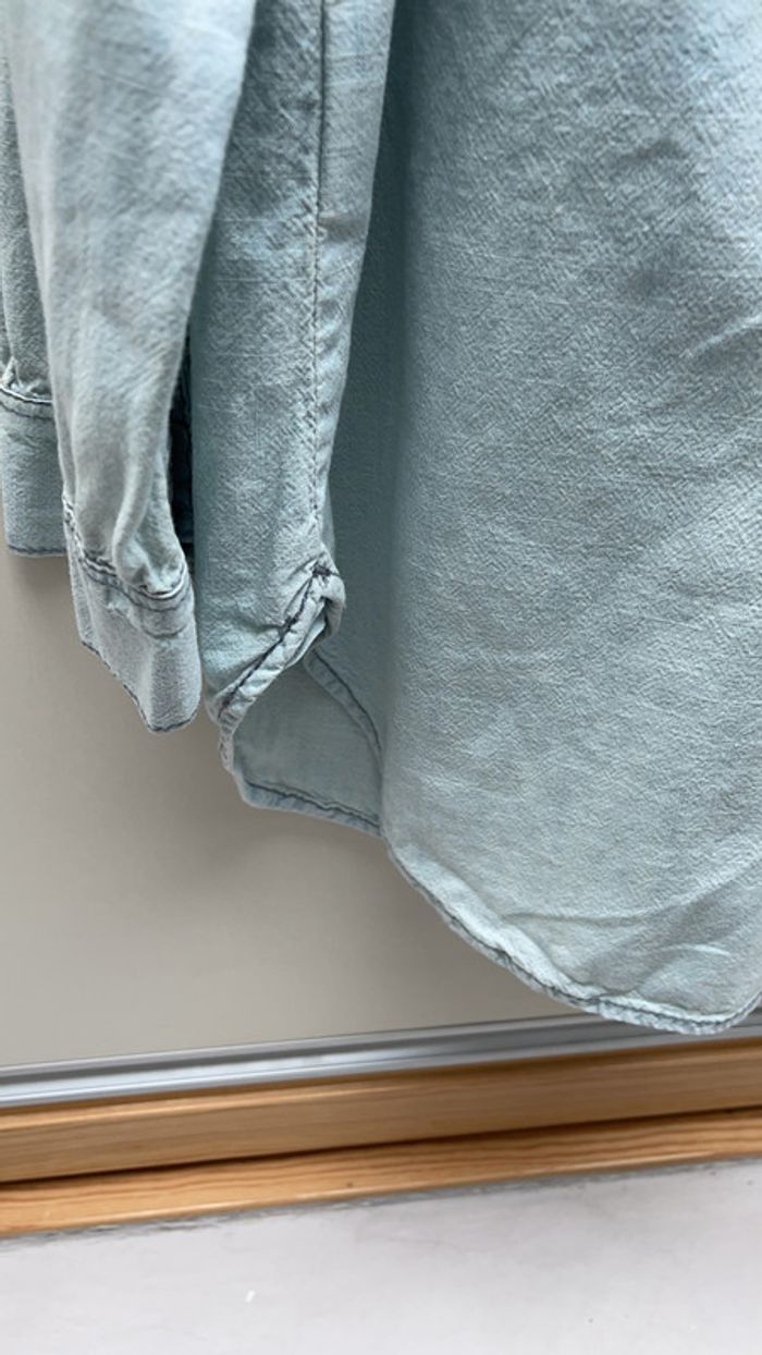 Chemise Gap jean délavé bleu ciel très clair à manches longues fermée sur le devant jusqu’au nombril S’Enfile par la tête