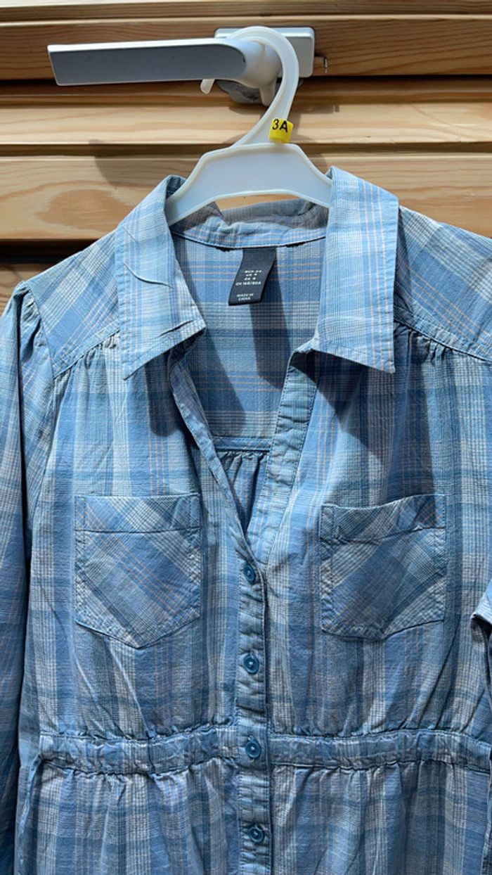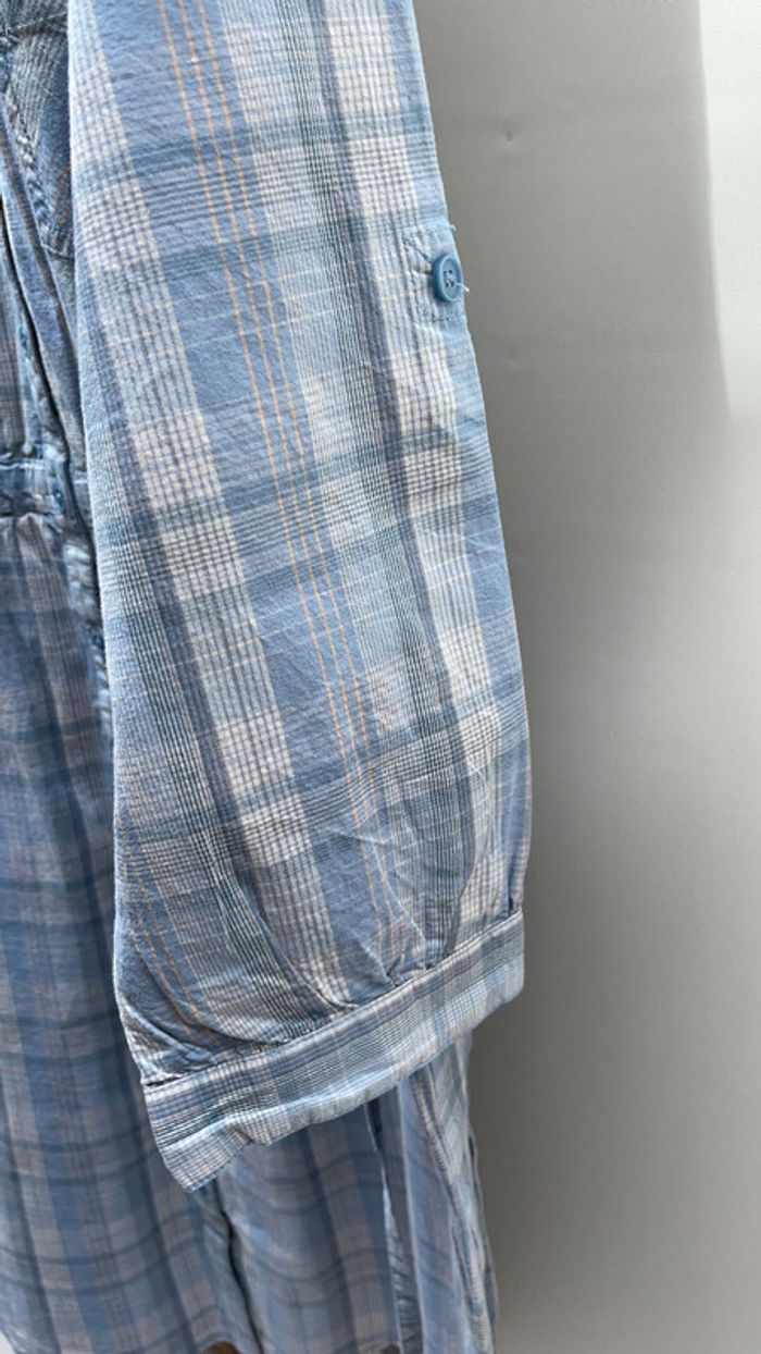 Chemise longue à carreaux qui se resserre à la taille par des liens - 2 poches sur la poitrine Manches 3/4 qui peuvent être remontées en manches courtes CN