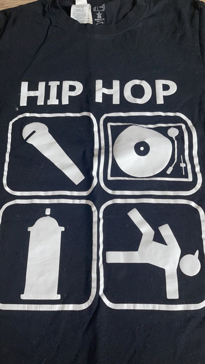 Tee-shirt noir à manches courtes Inscriptions blanches Hip hop Neuf lavé mais jamais porté CN
