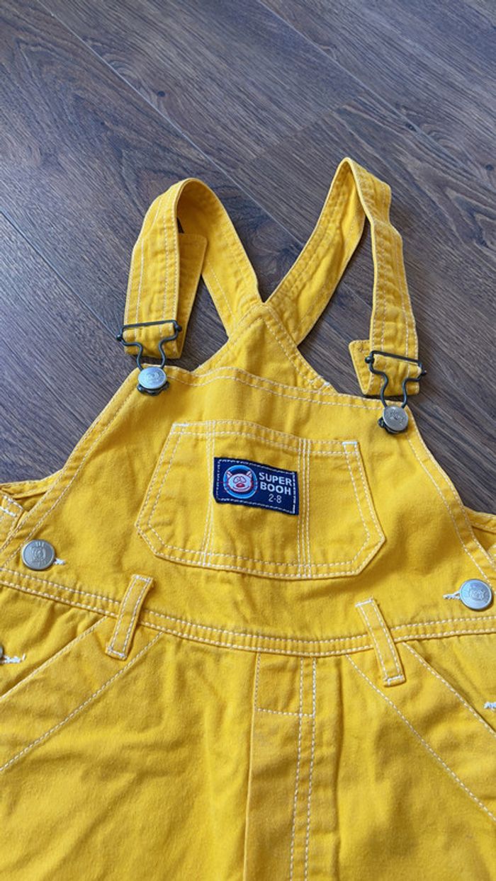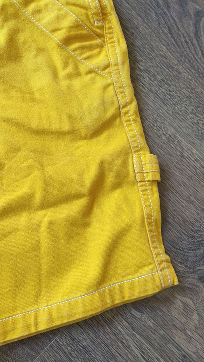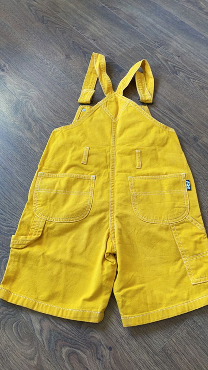Salopette été réglable par bretelles longueur mi cuisse avec 2 poches devant et derrière très joli jaune soleil