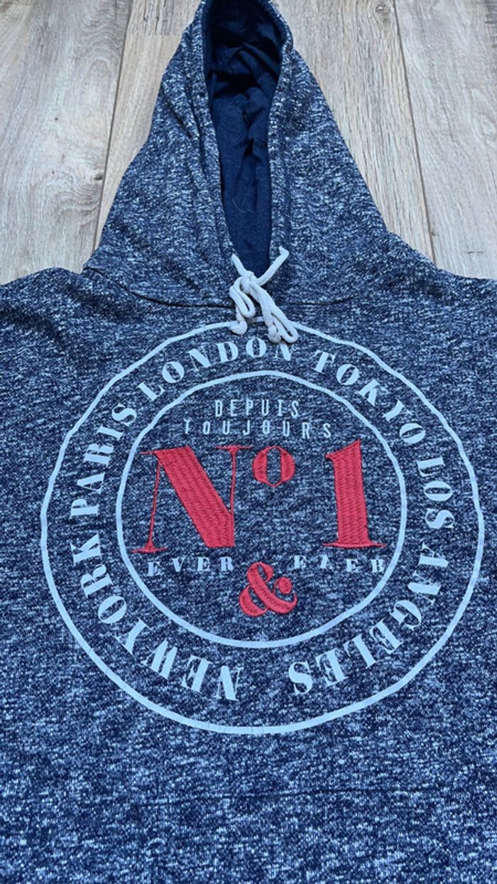 Sweat à capuche et à manches longues bleu marine chiné blanc avec poche kangourou