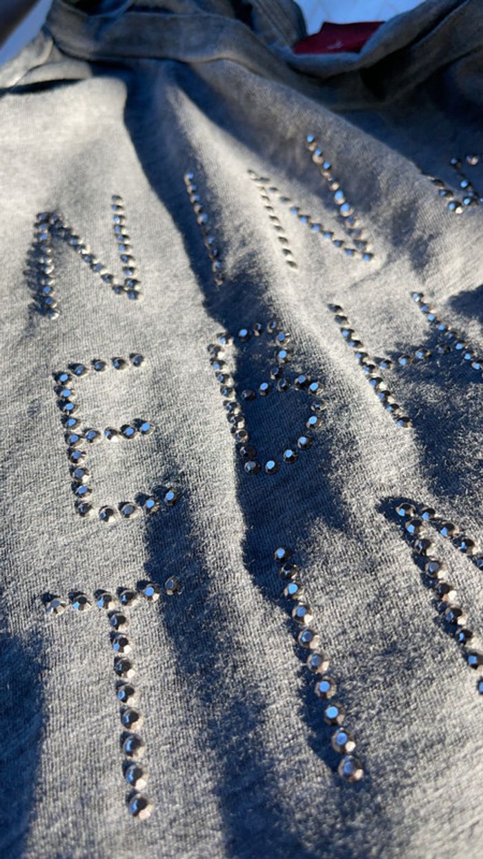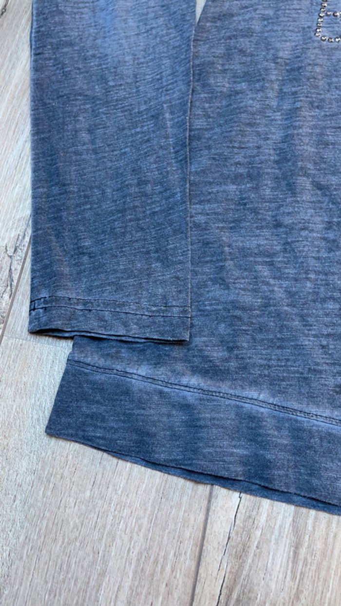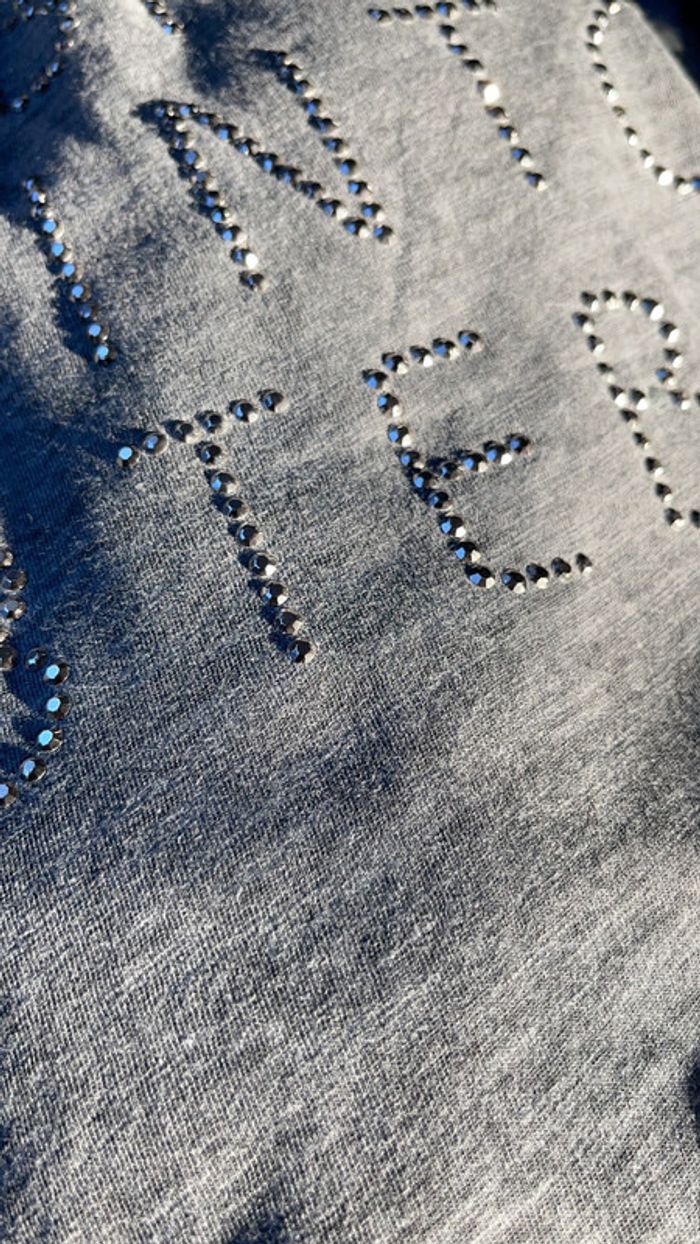 Tee-shirt à manches longues gris foncé chiné inscriptions en strass brillants