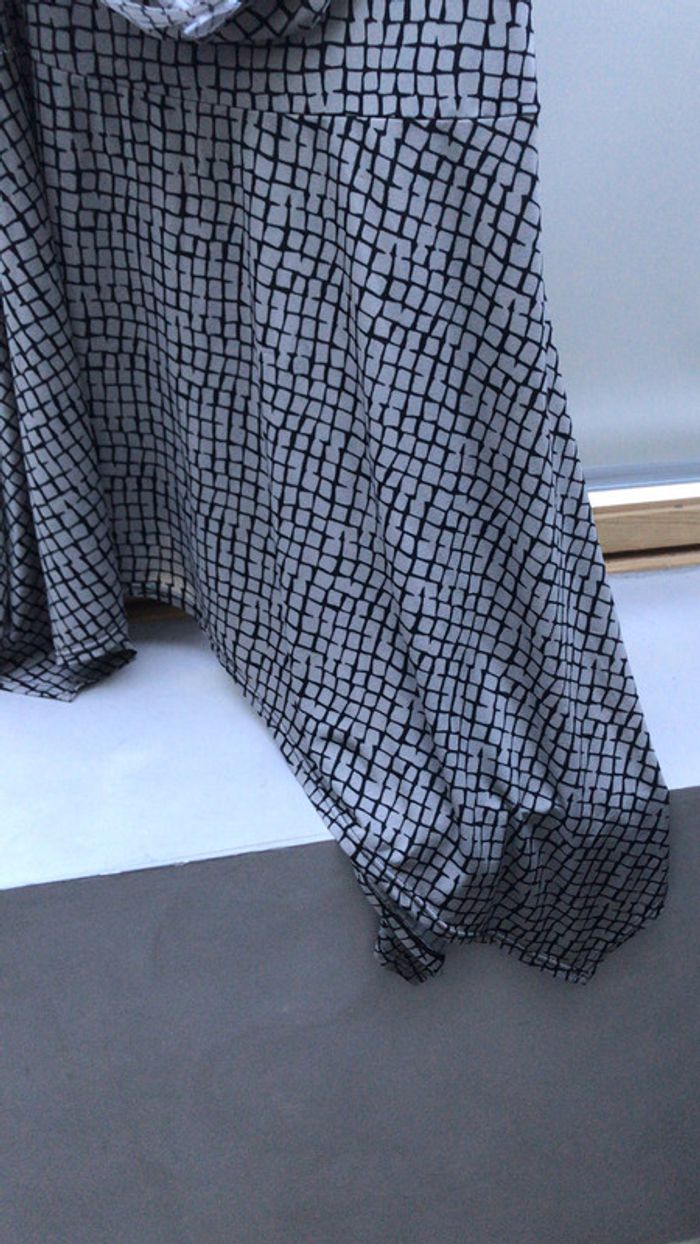 Top sans manche - haut à col rond et bas évasé asymétrique couleur marron taupe avec motifs à carreaux noirs