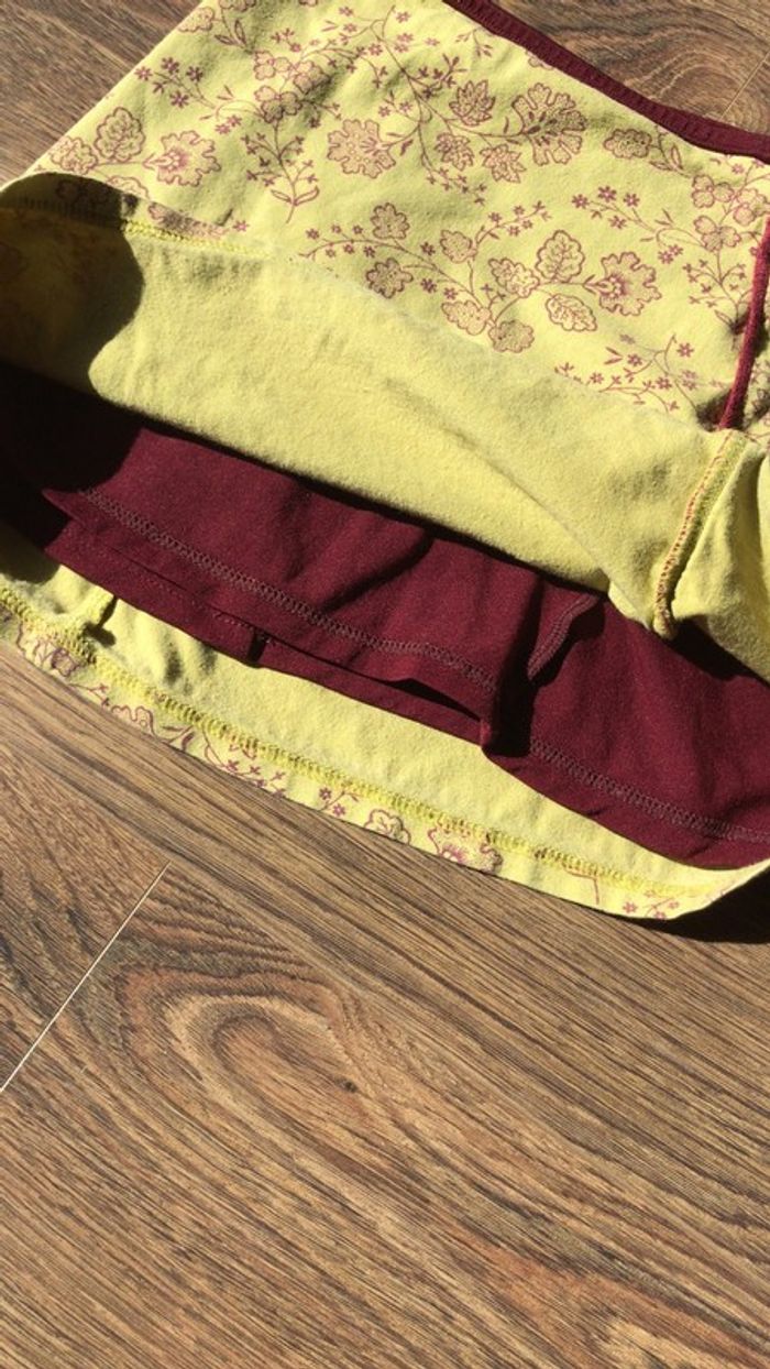 Jupe en coton doublée vert anis à fleurs bordeaux Envoi par la poste sans suivi de la jupe pour réduire les frais d’envoi possible (me demander)