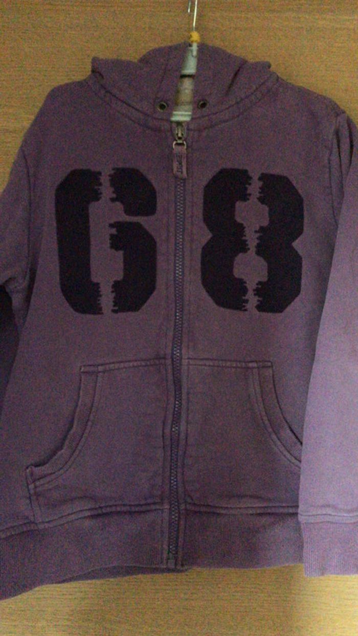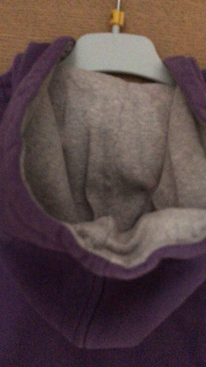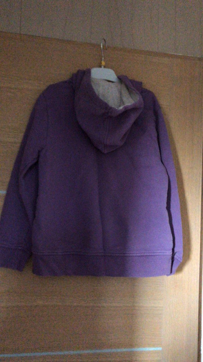 Veste Esprit molleton épais violette - chiffres 6 8 sur la poitrine brodés violet plus foncé -fermeture éclair 2 poches plaquées sur le devant Intérieur de la capuche doublé en coton gris