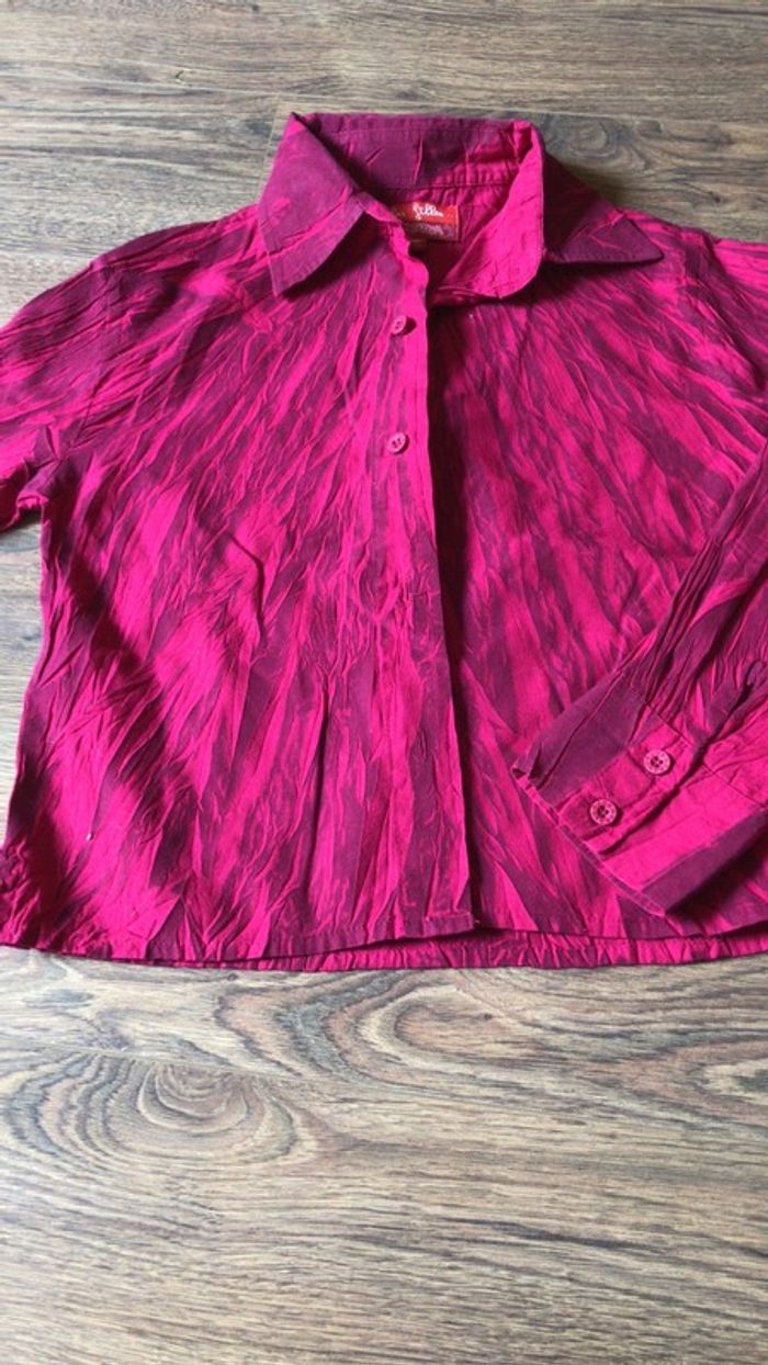 Chemisier Orchestra 8 ans à manches longues de couleur fushia marbré - tissu avec un effet légèrement froissé - De la même collection que la robe marron