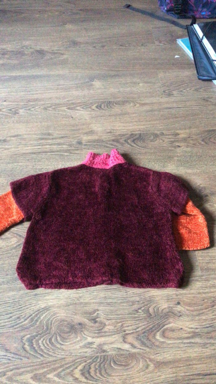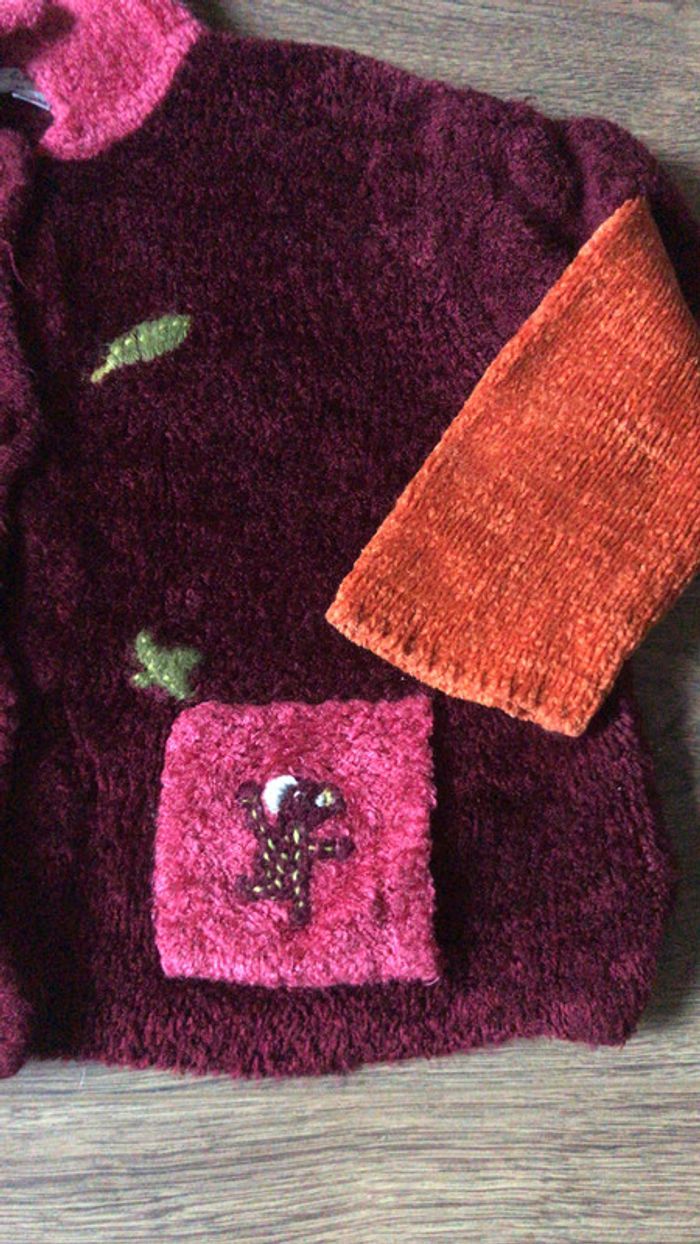 Veste hiver Catimini en laine toute douce couleur bordeaux / fushia / orange à manches longues