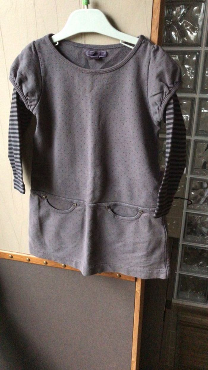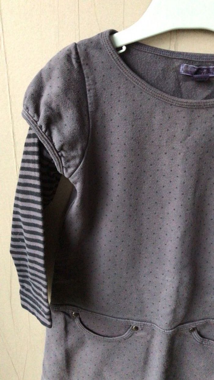 Robe grise molletonnée à petits pois noirs