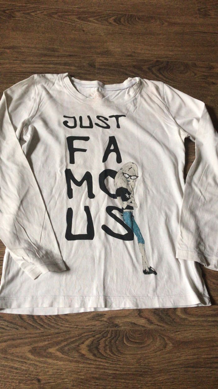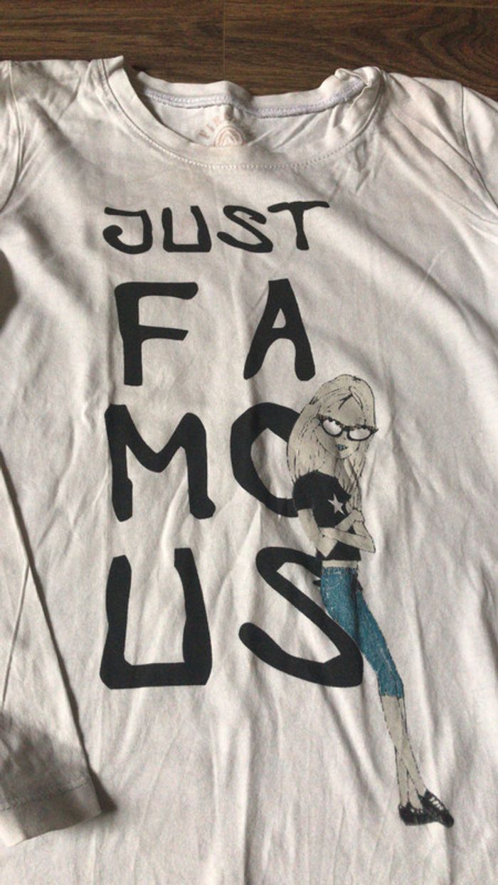 Tee-shirt blanc en coton à manches longues inscription « Just famous «  sur le devant
