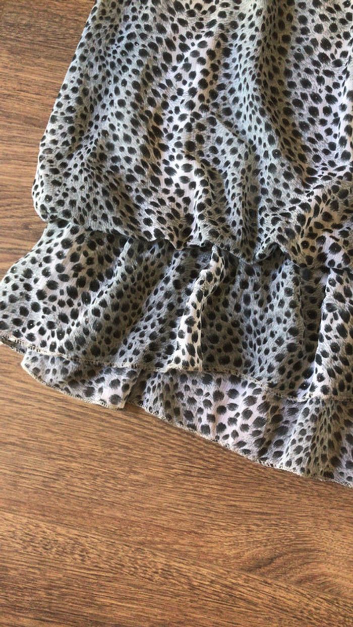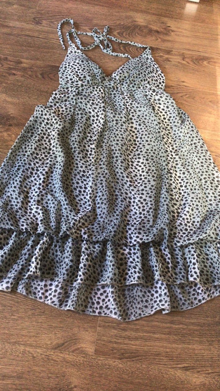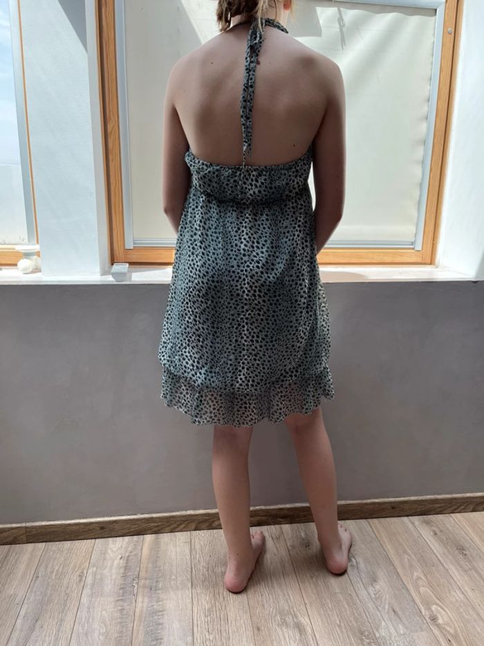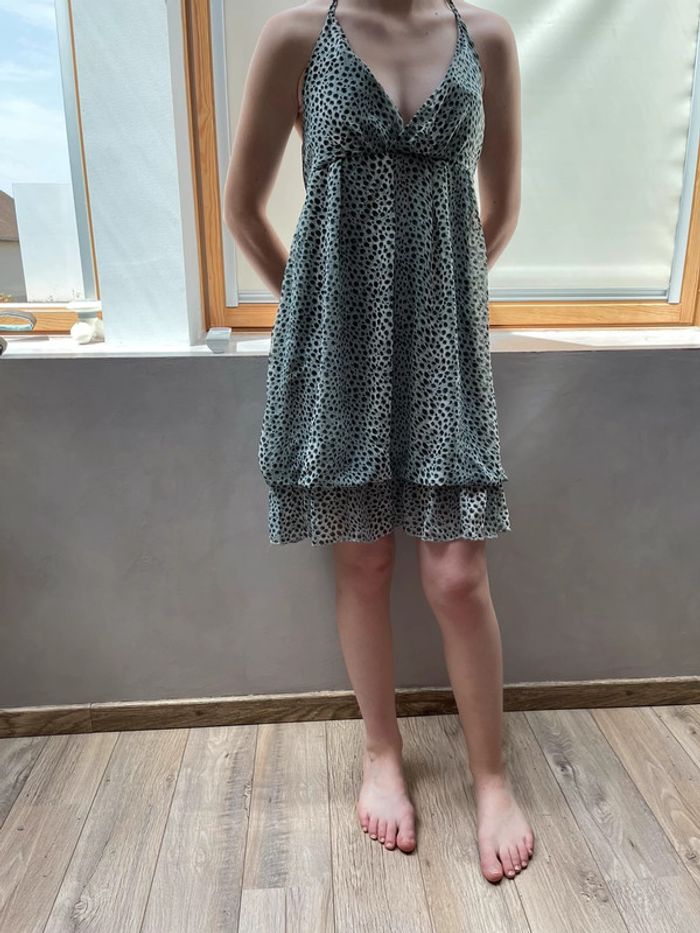 Robe été à bretelles grise motifs taches noires Tissu en crêpe effet voile