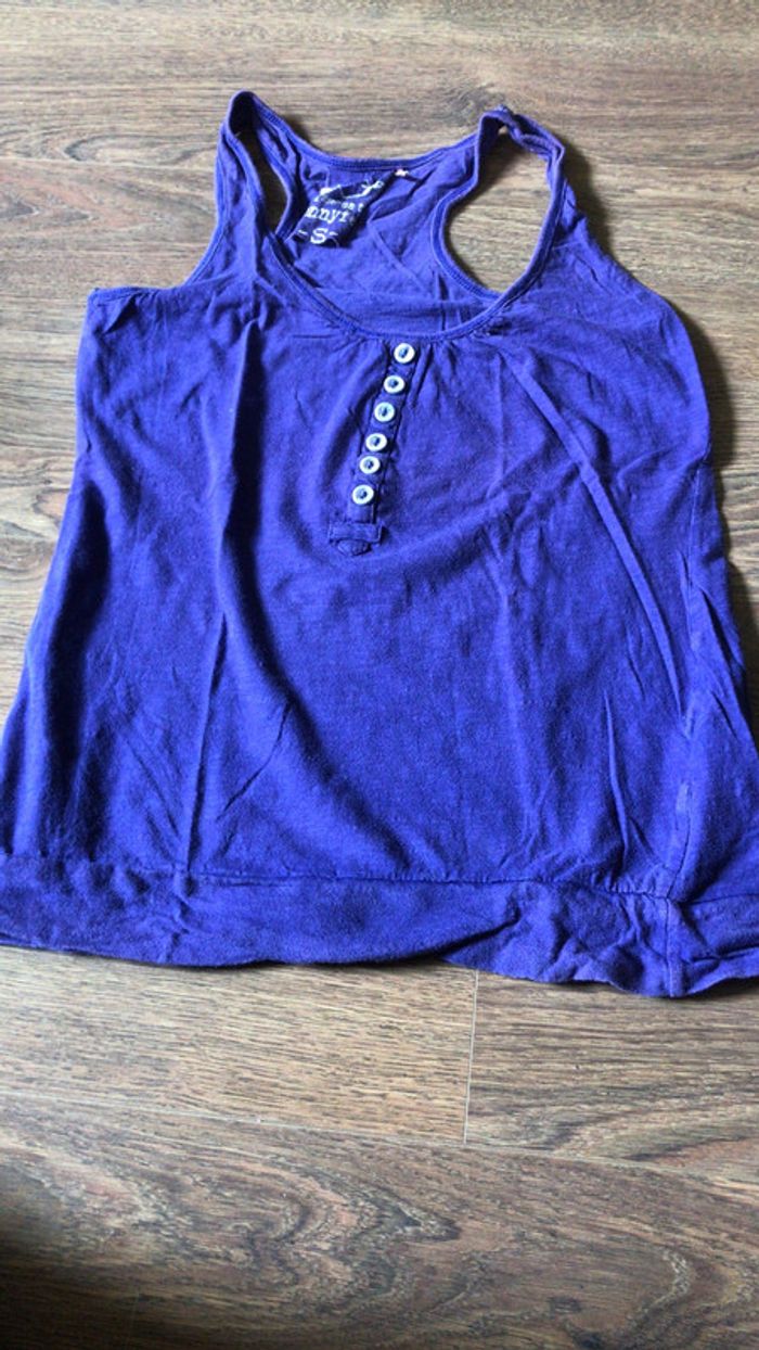 Débardeur Jennyfer violet (la photo donne l’impression qu’il est marine)
