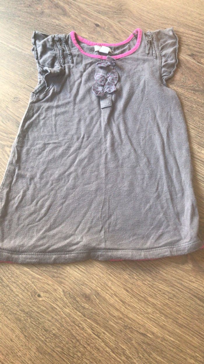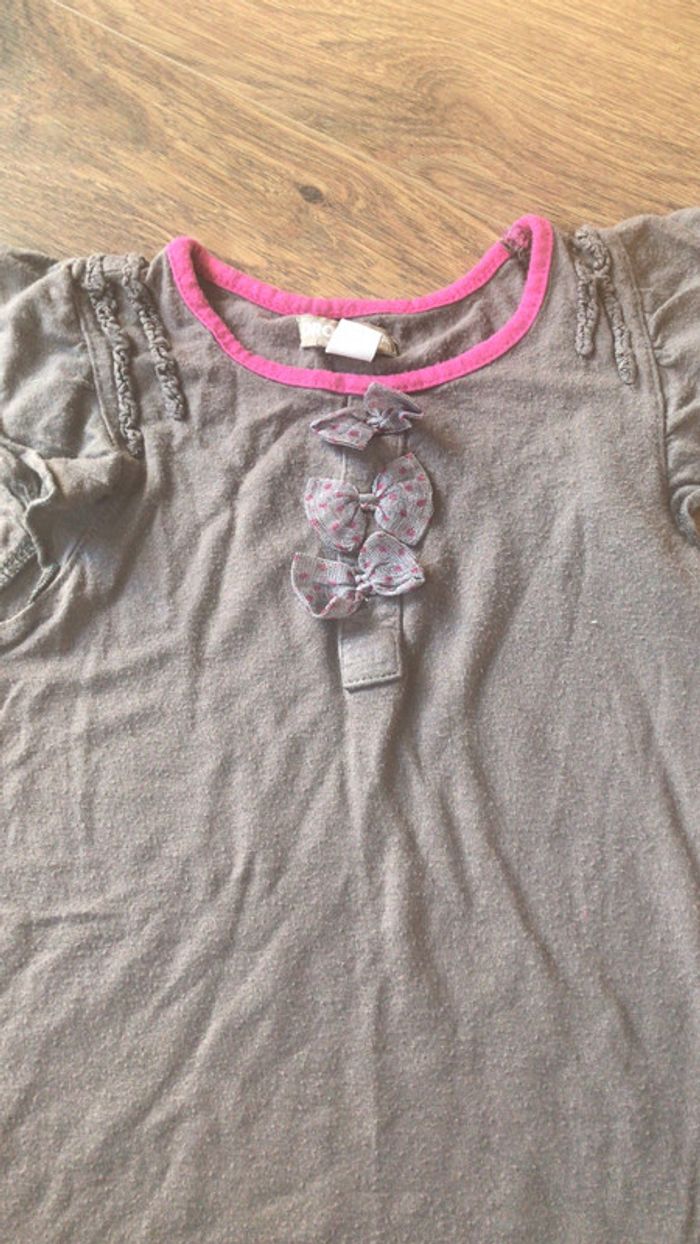 Tee-shirt longueur 3/4 Orchestra gris encolure fushia 3 petits noeuds sur l’avant