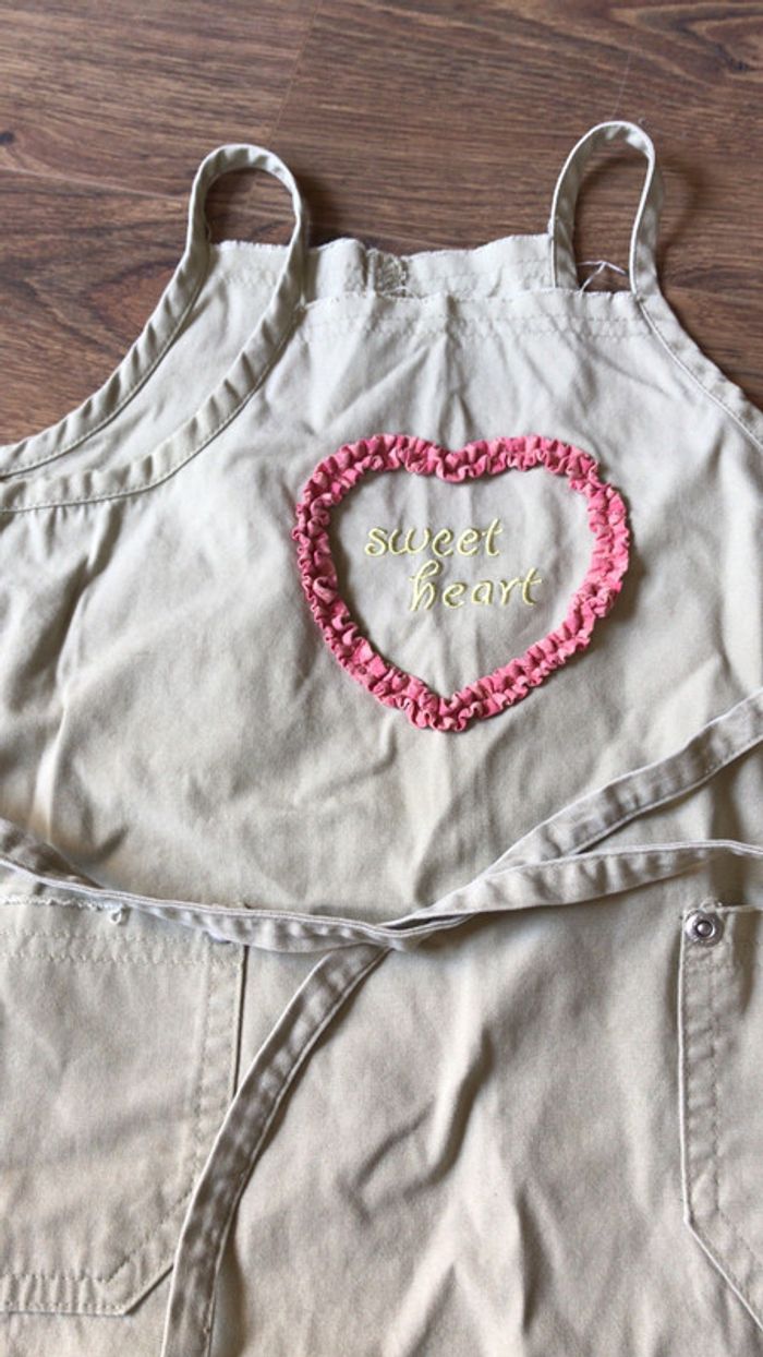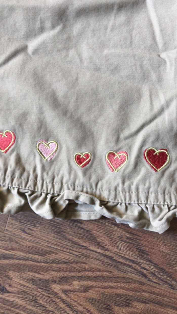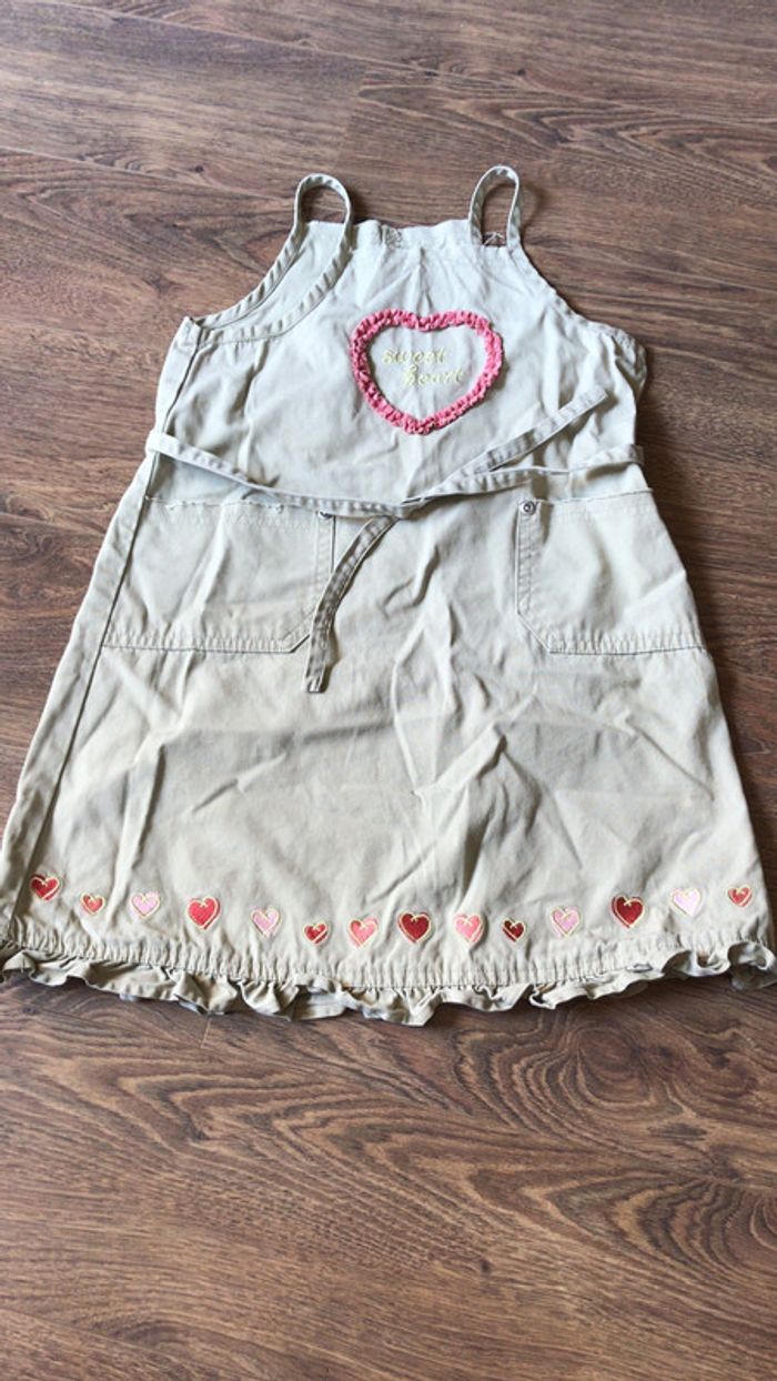 Robe été toile O’Kids couleur sable cœur sur la poitrine et broderies sur le bas 2 poches plaquée sur le devant