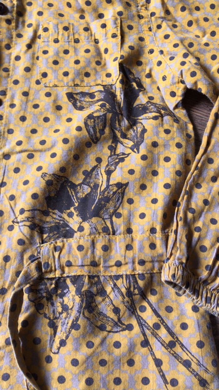 Chemisier à fleurs jaune moutarde, marrons sur fond taupe Lien pour resserrer la ceinture - forme tunique CH