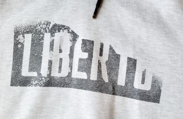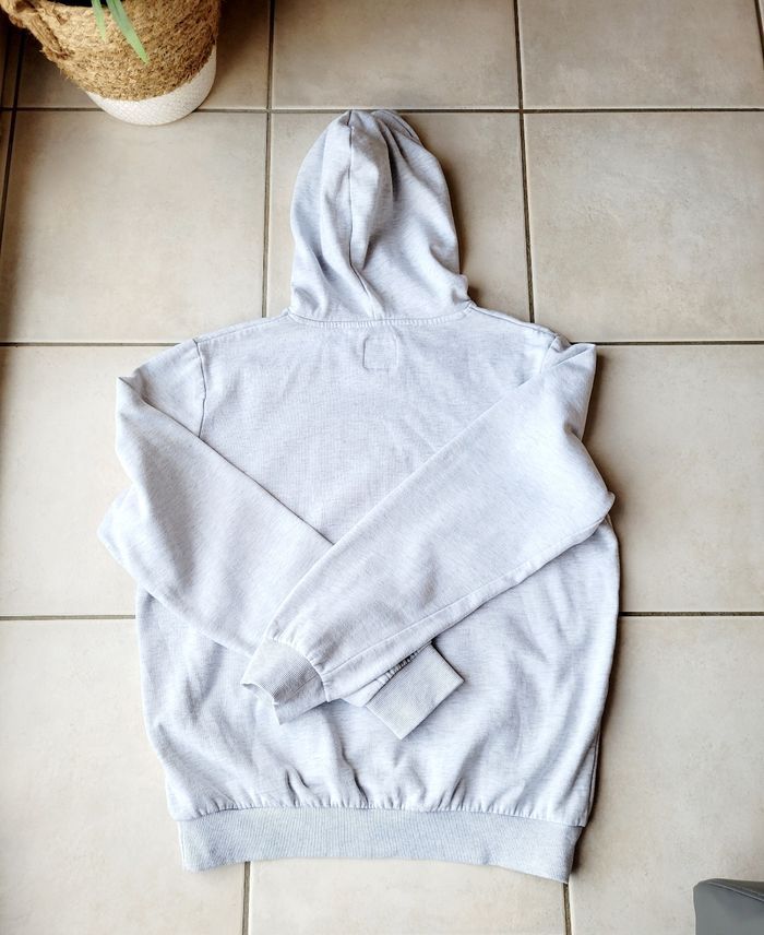 Sweat à capuche en coton gris clair avec un petit motif sur le devant, poche ventrale, intérieur molletonné.