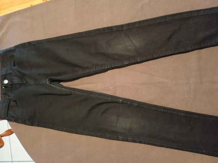 Vends jean skinny Bon état général hormis couleur noire légèrement passée au niveau des genoux et un peu plus aux fesses