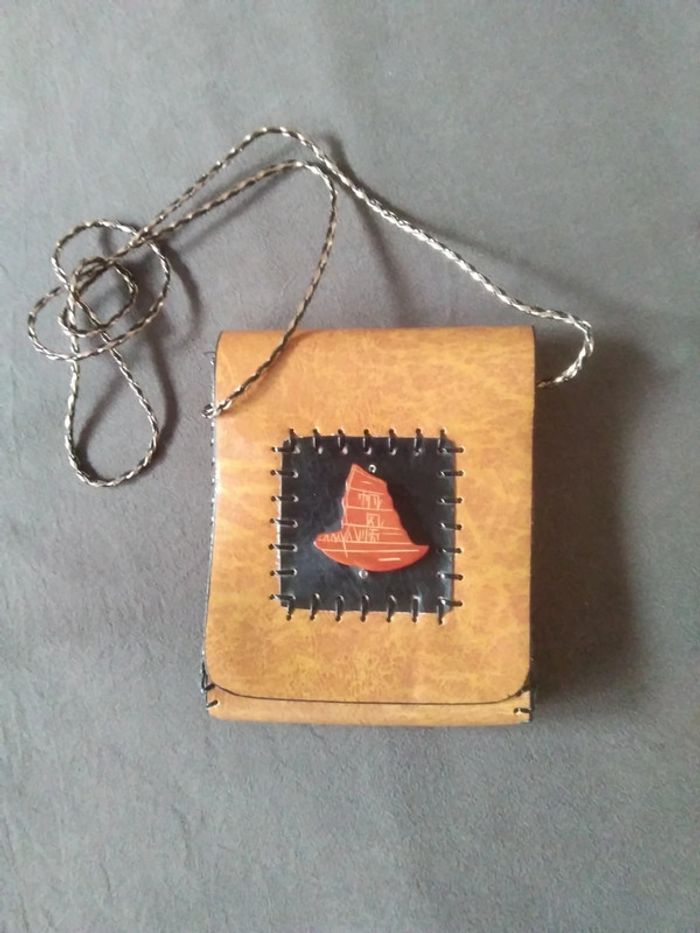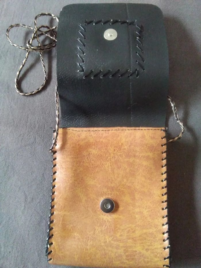 Vends sac à main "pochette" pour bandoulière Certainement artisanal , aucune étiquette, semble être du cuir Pochette contenant un toute petite poche zippée Jamais utilisée Coloris "Terre" : marron orangé