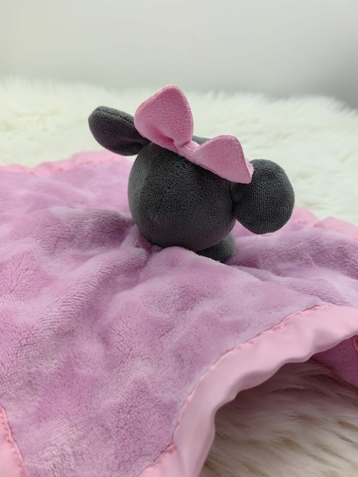 Doudou Disney Baby Minnie carré blanc gris foncé, rose.
