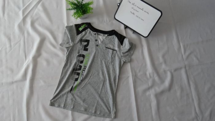 Tee shirt manche courte gris / noir / vert / blanc Taille 11 / 12 ans