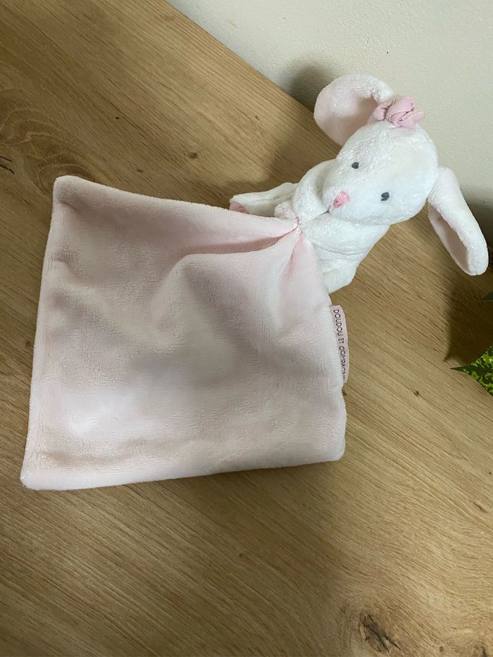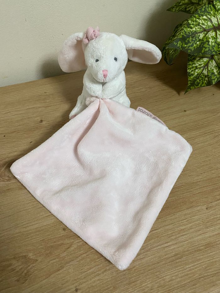 Doudou lapin blanc mouchoir rose doudou et compagnie