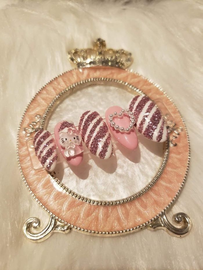 Forme amande médium #pressonnails #Hellokitty #Noël