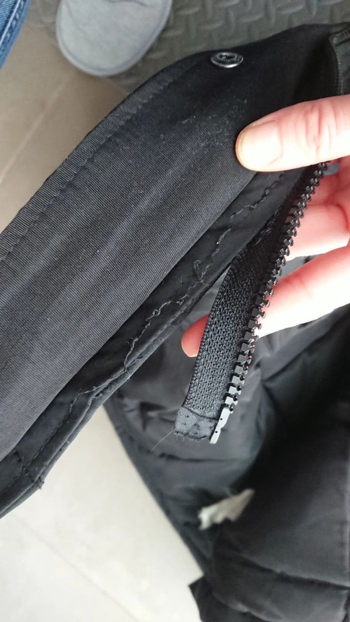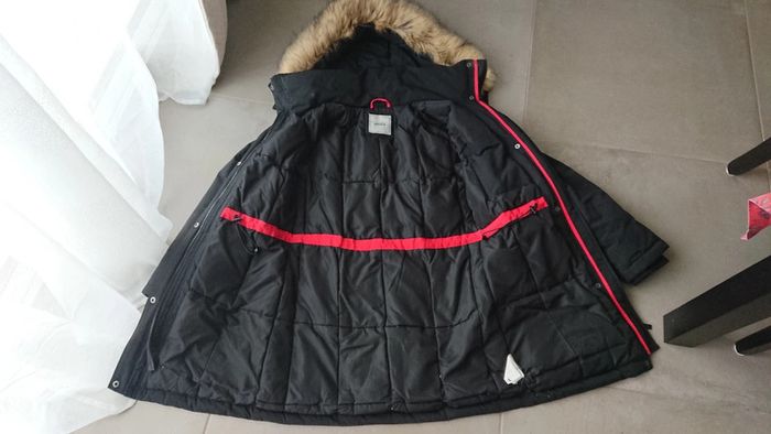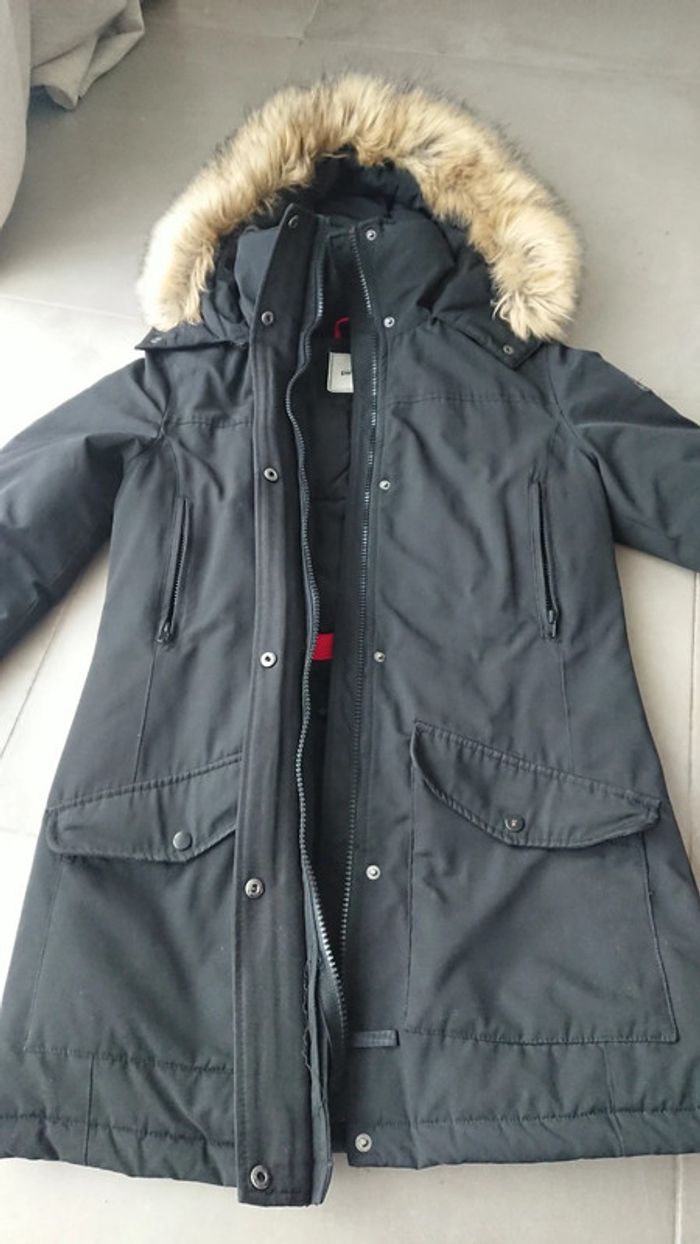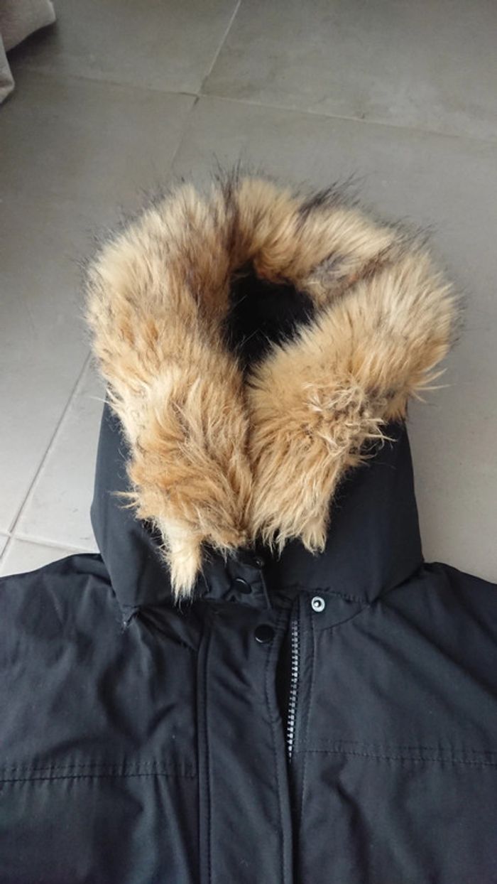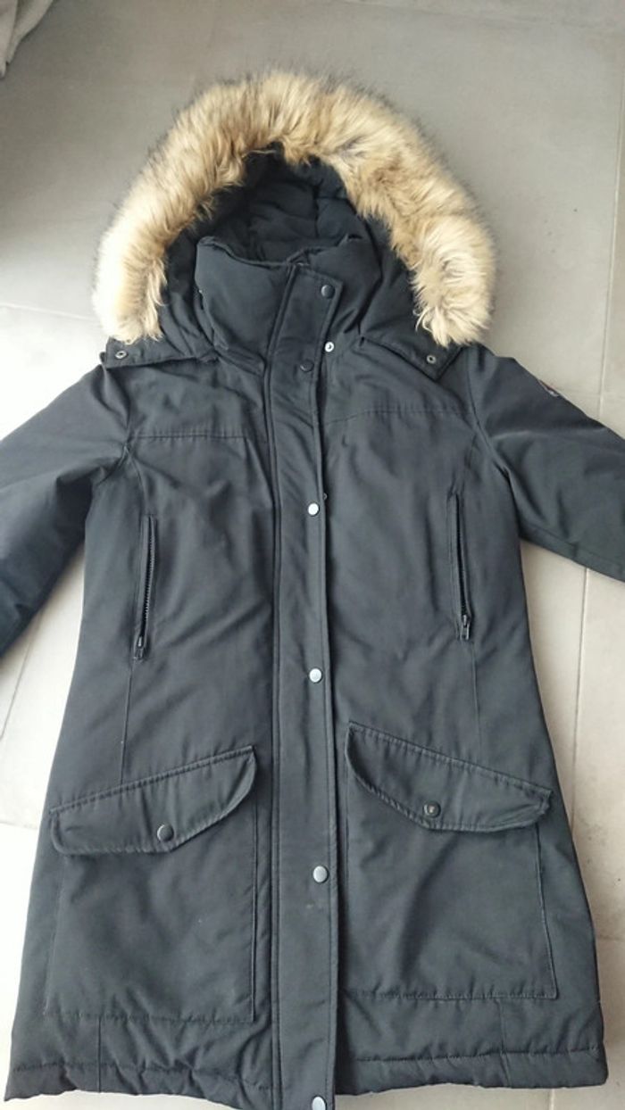 Manteau hiver chaud taille S marque pimkie. A 2 endroits a recoudre un coin de base de capuche et le bas de la fermeture éclaire. N ayant aucun talent de couture je ne peux le faire d ou le prix faible