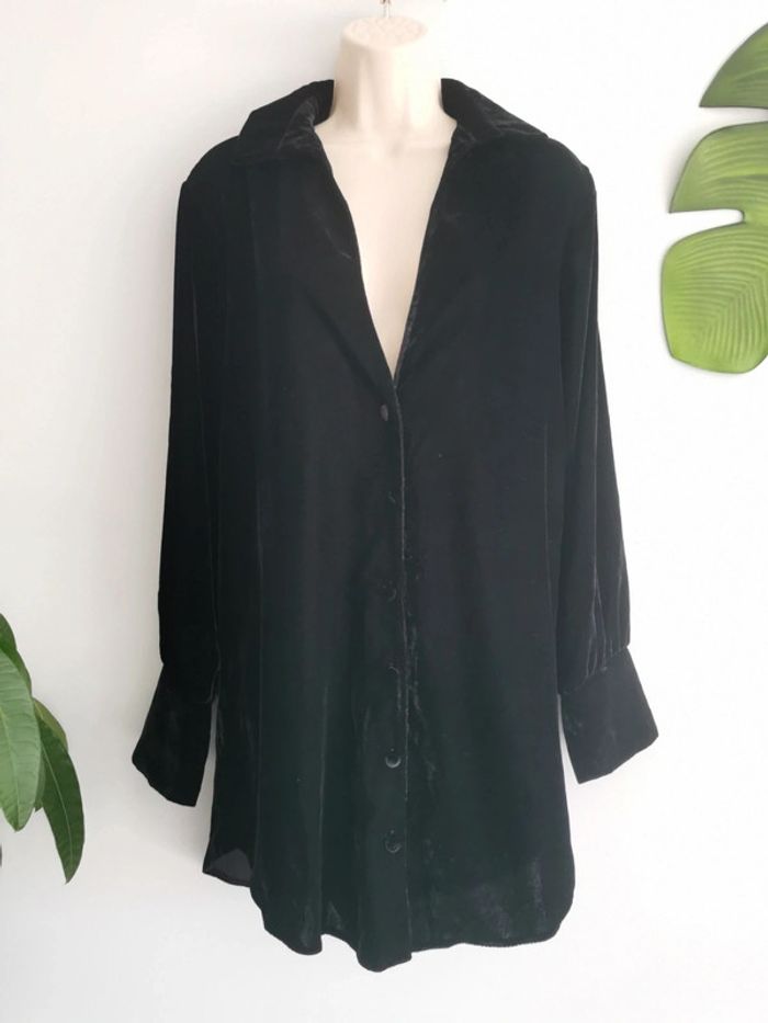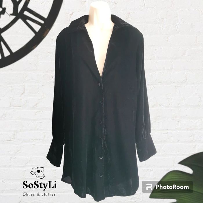👗 ARTICLE NEUF SANS ÉTIQUETTE 👗 Robe 👗chemise en velours 👩 Asos Design Taille 34 • Matière: 100% polyester • Tissu velours ⚫ doux, effet brillant • Col chemise • Décolleté en V • Coupe large décontractée • Manches longues ouvertes au poignet • Fermeture boutonnée à l'avant • Base arrondie • Couleur: Noir ⚫️ • 📏 Longueur: 83 cm • 📏 Mesure épaules: 42 cm • 📏 Mesure sous aisselles: 45 cm 💰 Prix boutique: 51.99€ Parfait état👌, avec étiquette🏷️, jamais portée #SoStyLifemmeTailleXS ⬛