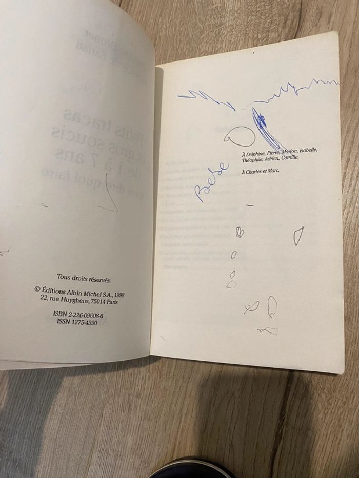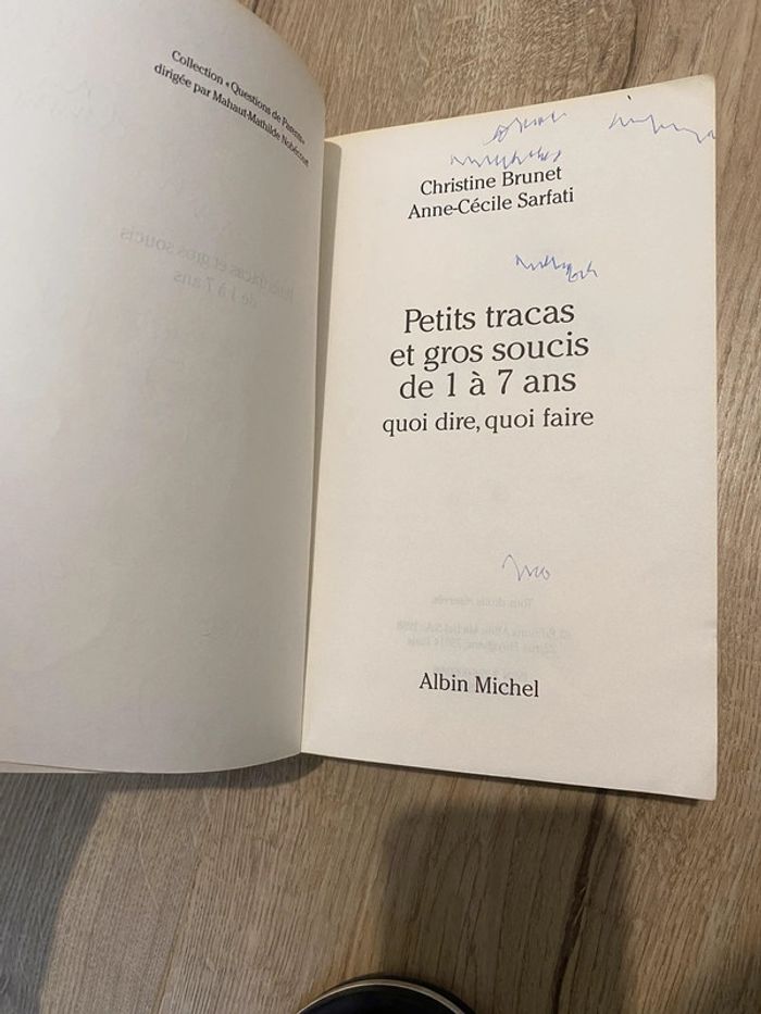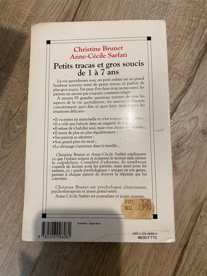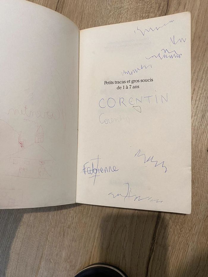 Livre petits tracas et gros soucis de 1 à 7 ans La couverture est abîmé et les premières pages avec des écritures voir les photos Mais le texte en lui même est en parfait état