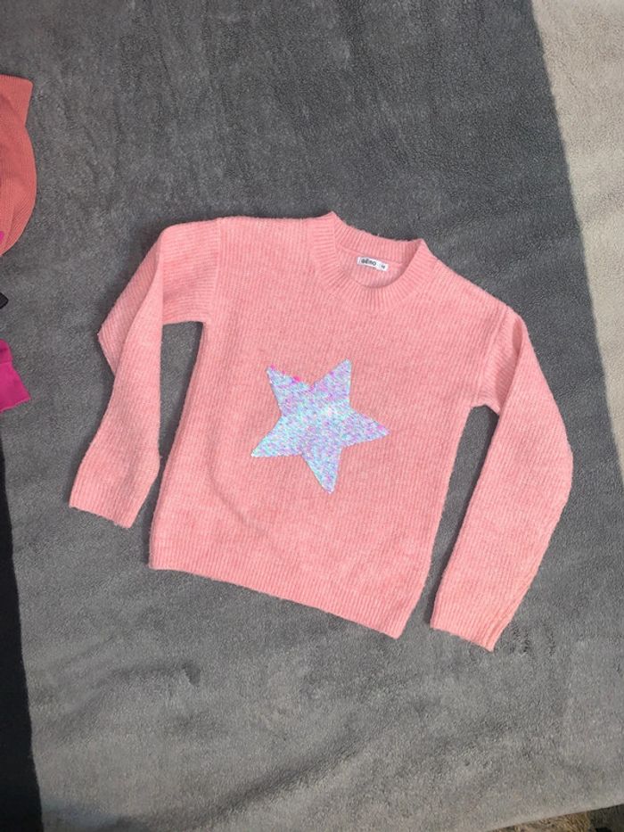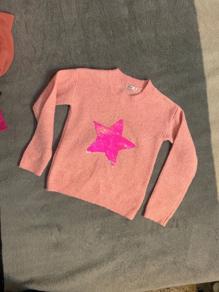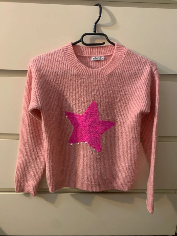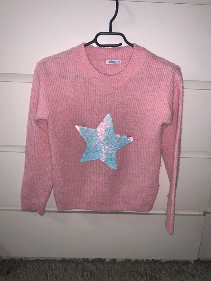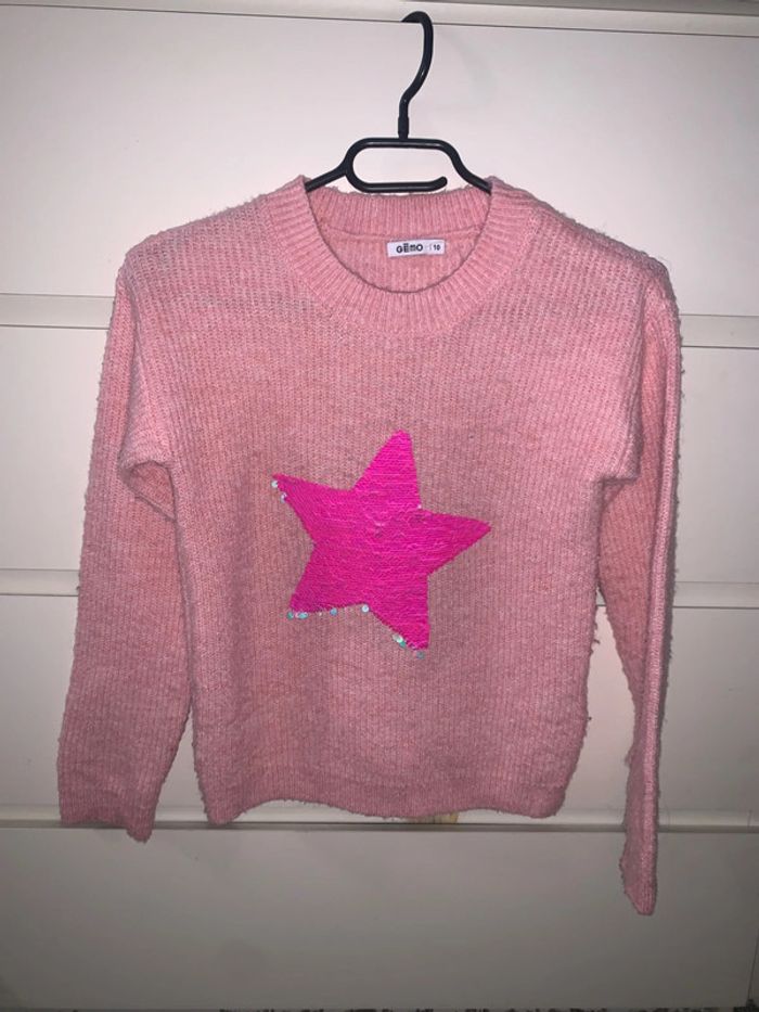 Très beau pull avec étoile strass qui change de couleur. Très bon état (quelques bouloches facile à retirer) Taille : 10 ans Couleur : rose