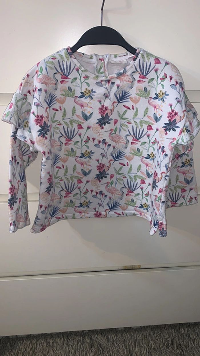 Très beau pull avec froufrou aux manches Quasiment neuf Taille : 3/4 ans (104cm) Marque : Zara