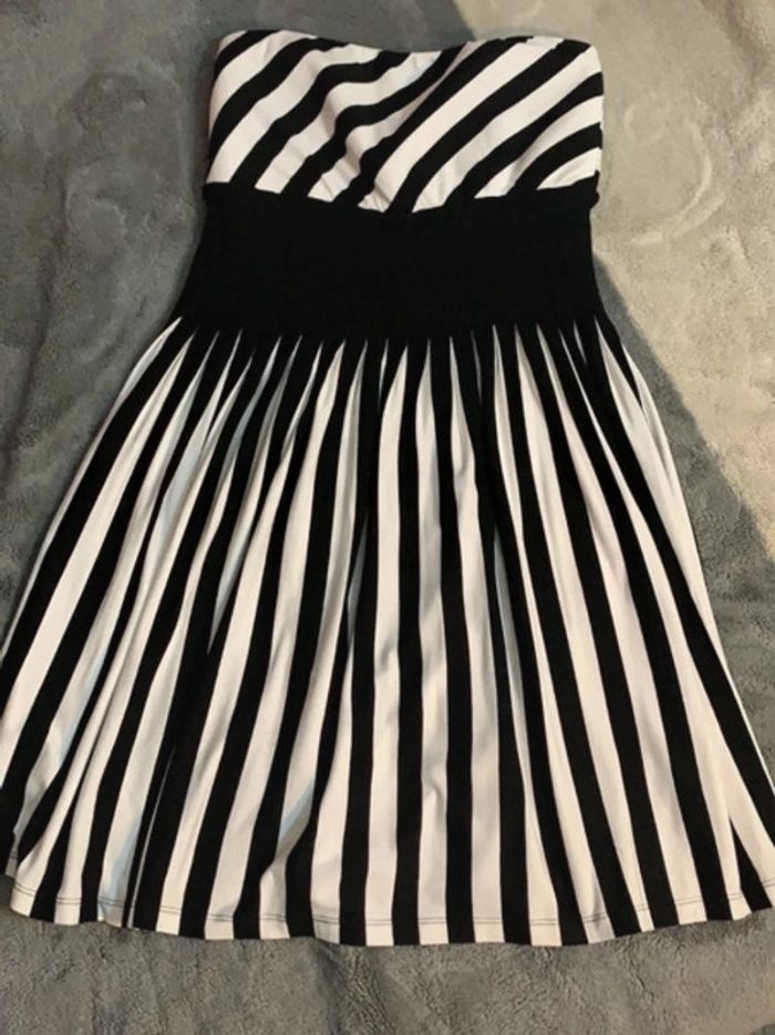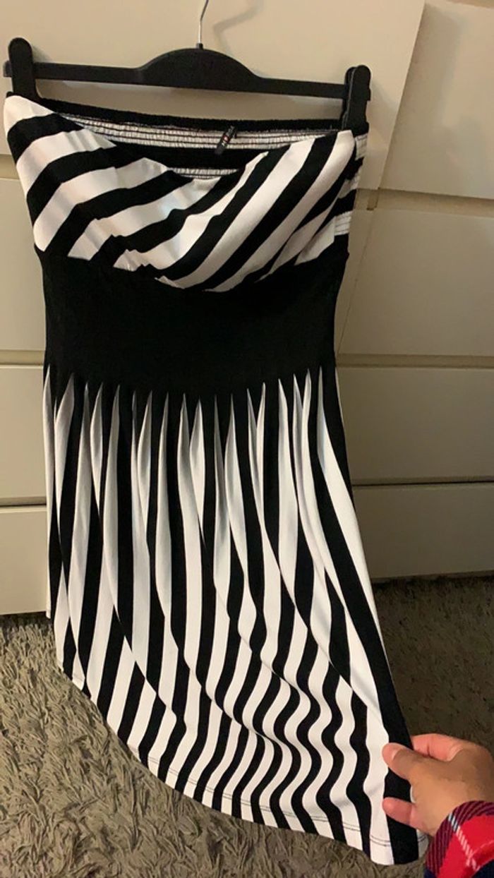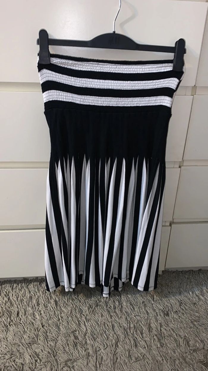 Très belle robe sans bretelles, très agréable à portée, tissu élastique Plus d’étiquette de taille Mesure : voir photo Longueur : 77cm