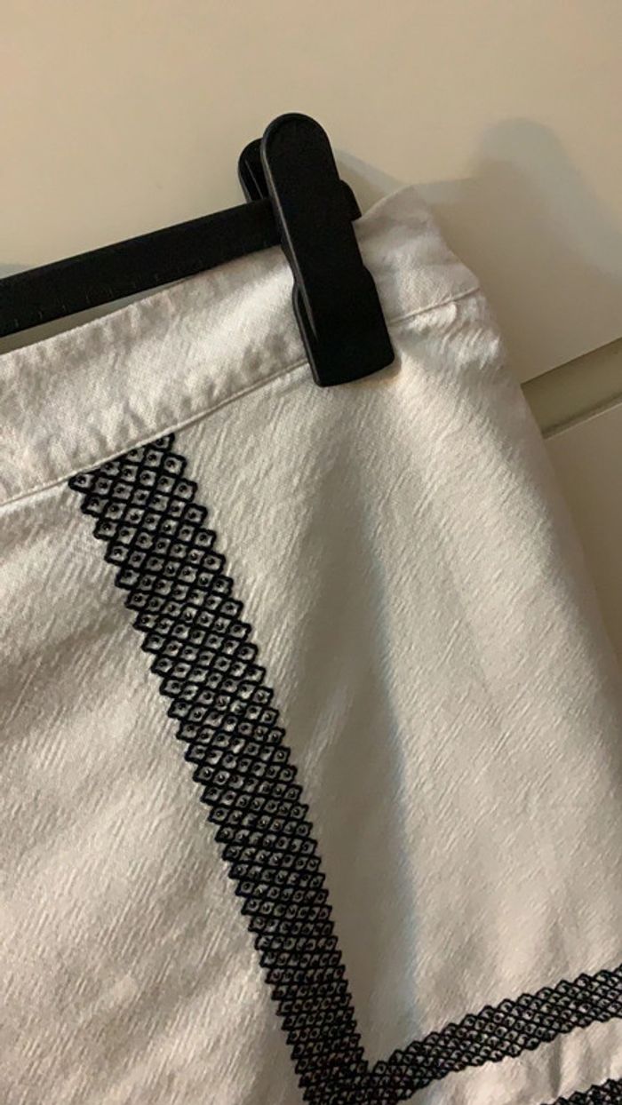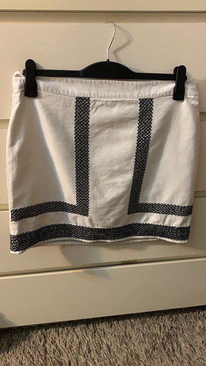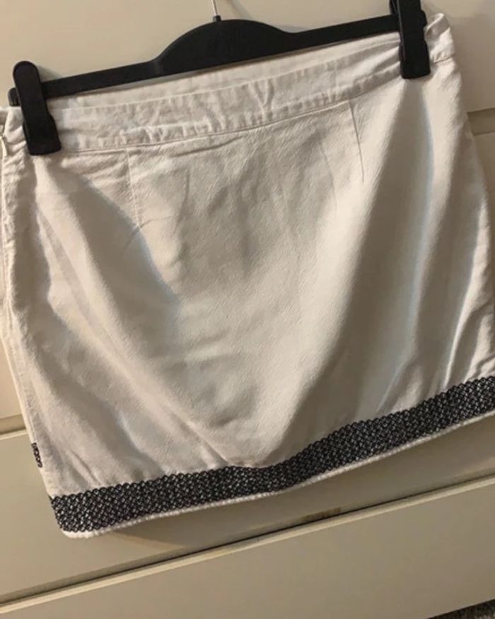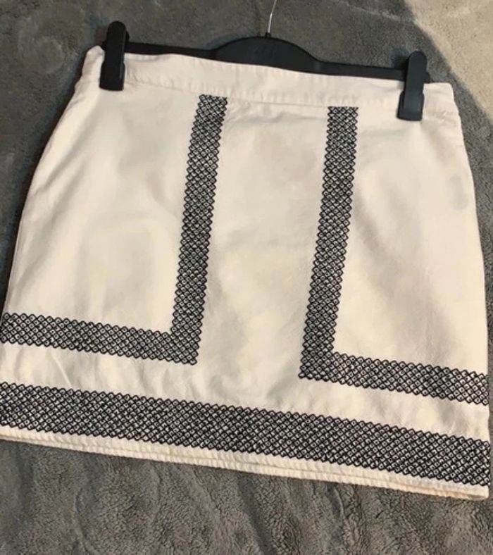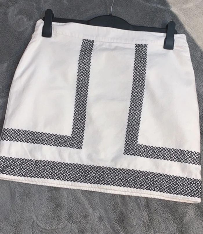 Jolie jupe courte en bon état Taille : 42 Marque : camaïeu Couleur: blanche et noire