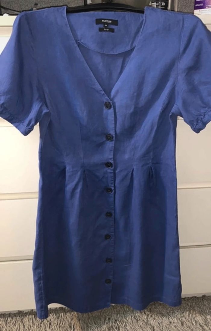 Très jolie robe en 100% Lin En bon état général Taille : 40 Marque : Burton Couleur : bleue Longueur : 97cm