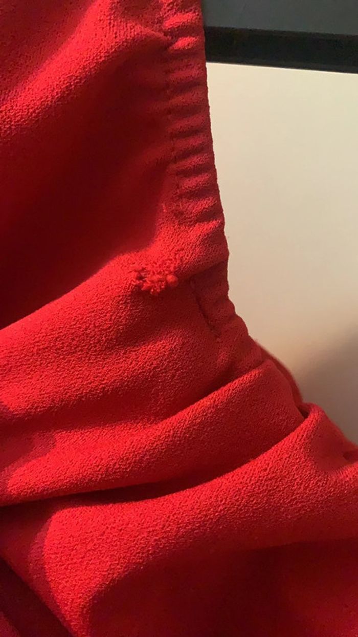 Très jolie robe épaule dénudées ou pas selon vos goût. en bon état général, sauf un micro trou sur le volant Voir photo Longueur robe : 72cm Mesure aisselles : 40cm