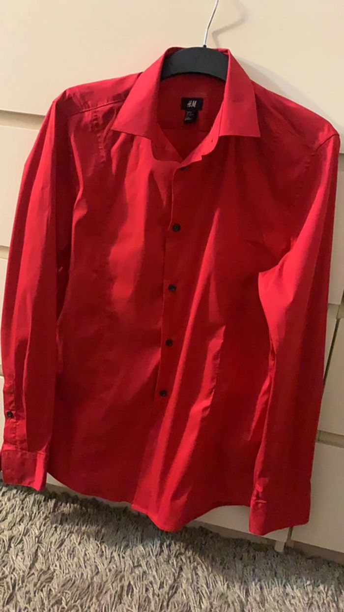 Très belle chemise, quasiment neuf ( portée 5 minutes pour photos) Stretch Taille : M Marque : H&M Couleur : Rouge