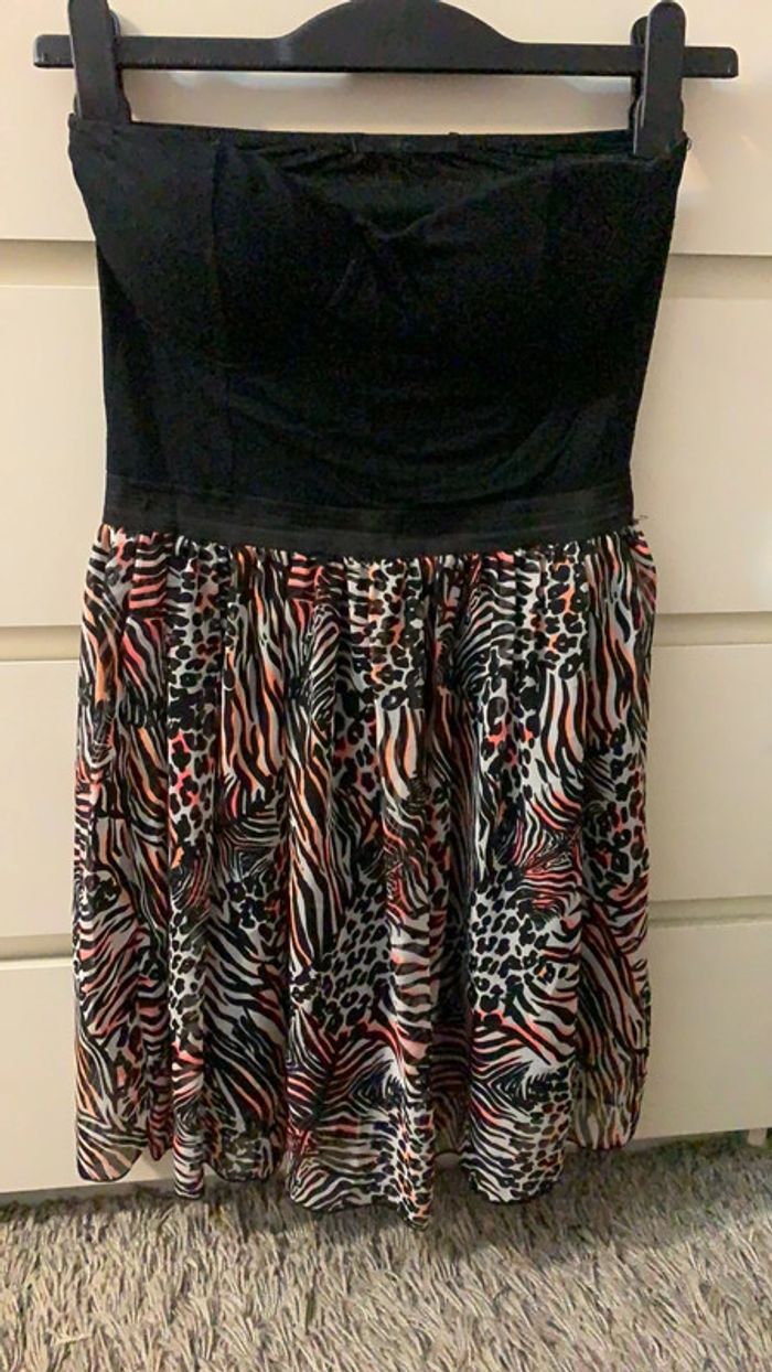 Très jolie robe sans bretelles Très bon état Taille : 32 (plus d’étiquette, voir photo pour les mesures) Marque : mim