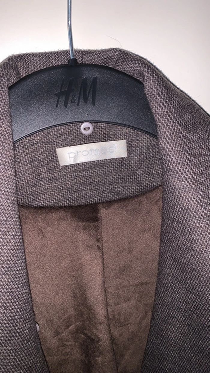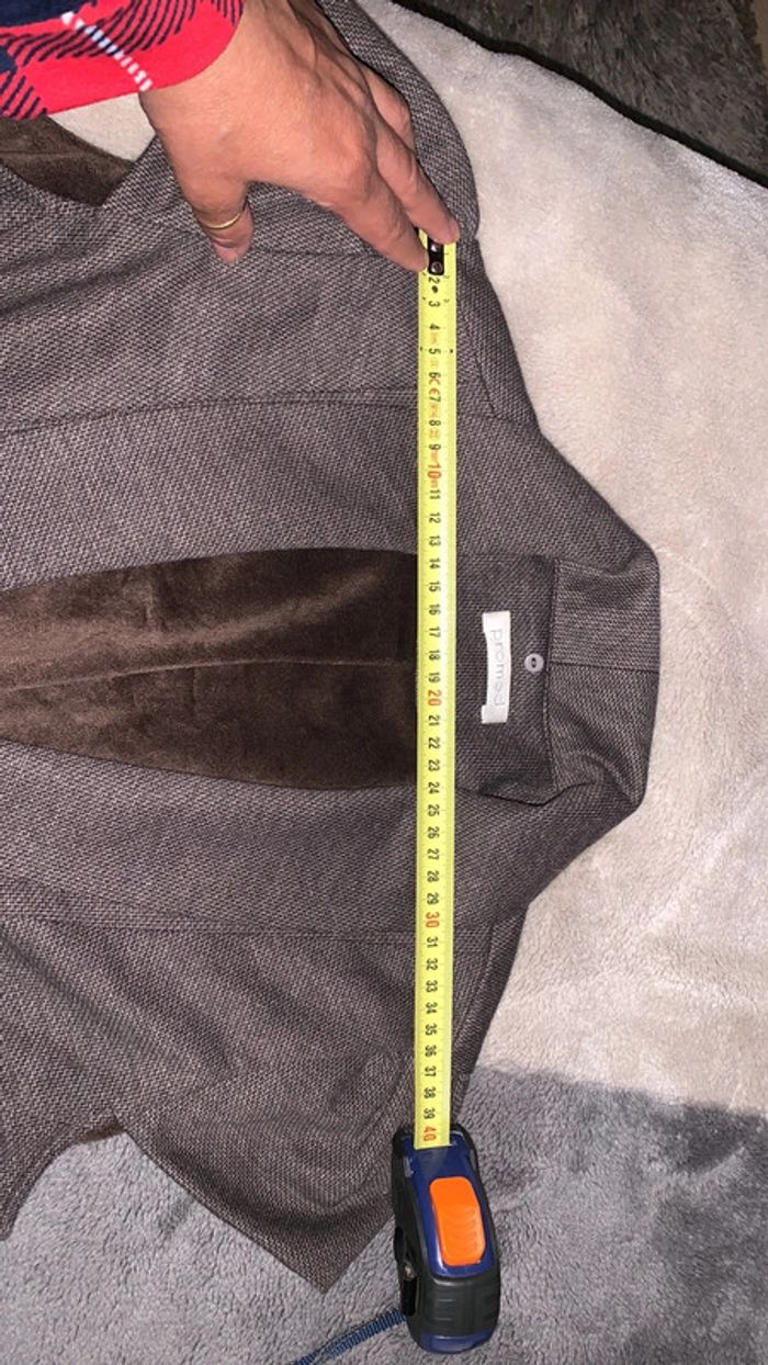 Jolie veste sans manche, la doublure à l’intérieur matière plaid très doux. A la base il y avait une fausse fourrure autour mais je ne la retrouve plus, mais c’est aussi jolie sans Taille : 36 (plus d’étiquette donc je vous donne les mesures en photo) Mesure épaule : 36cm Mesure aisselles : 47cm Longueur : 59cm Marque : Promod Couleur : marron