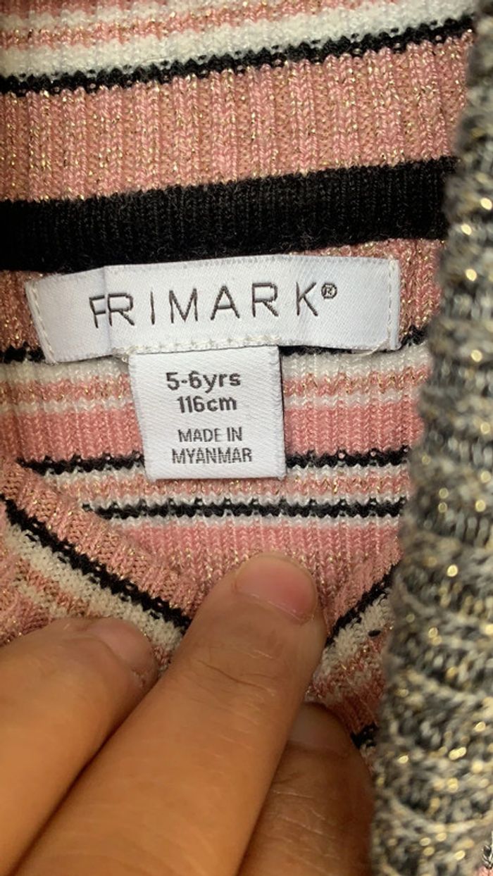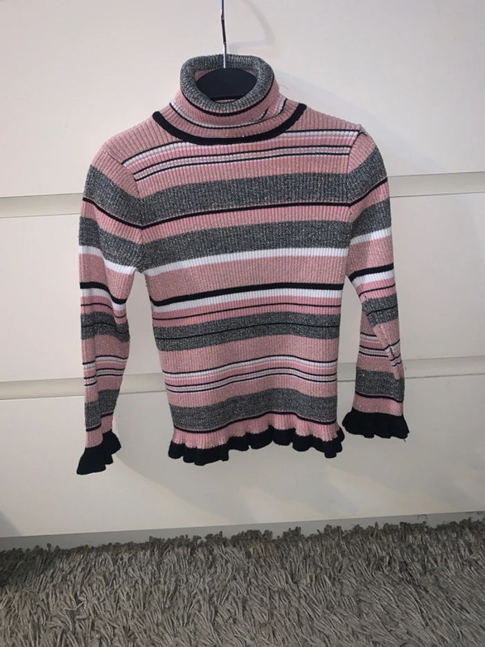 Très beau pull col roulé pailleté (jamais porté ) Taille : 5/6 ans (116cm) Marque : Primark Il existe le même dans mon dressing modèle uni N’hésitez pas à acheter en lot vous aurez un pourcentage de rabais.