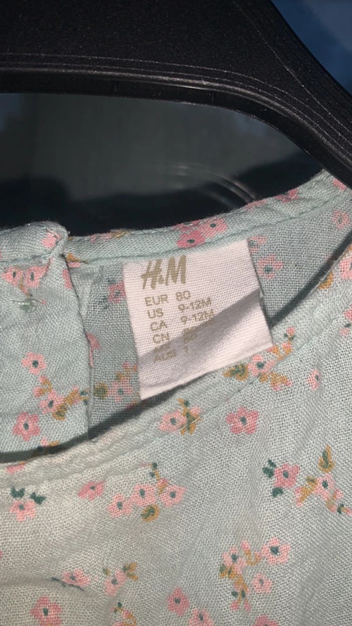 Jolie robe H&M en très bon état Taille : 80cm ( 9/12 mois) Pour la couleur je vous turquoise (j’ai du mal avec les couleurs )