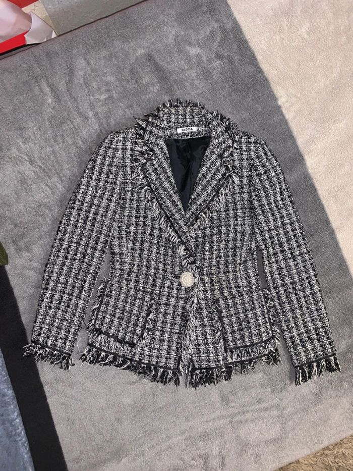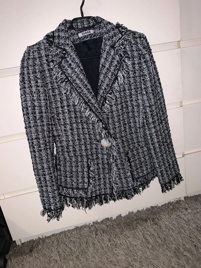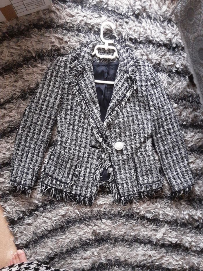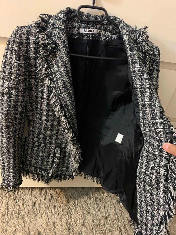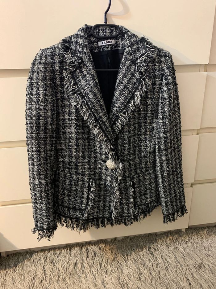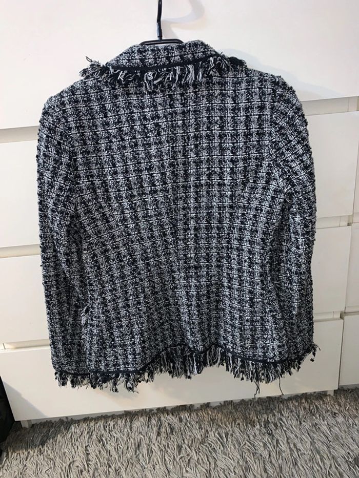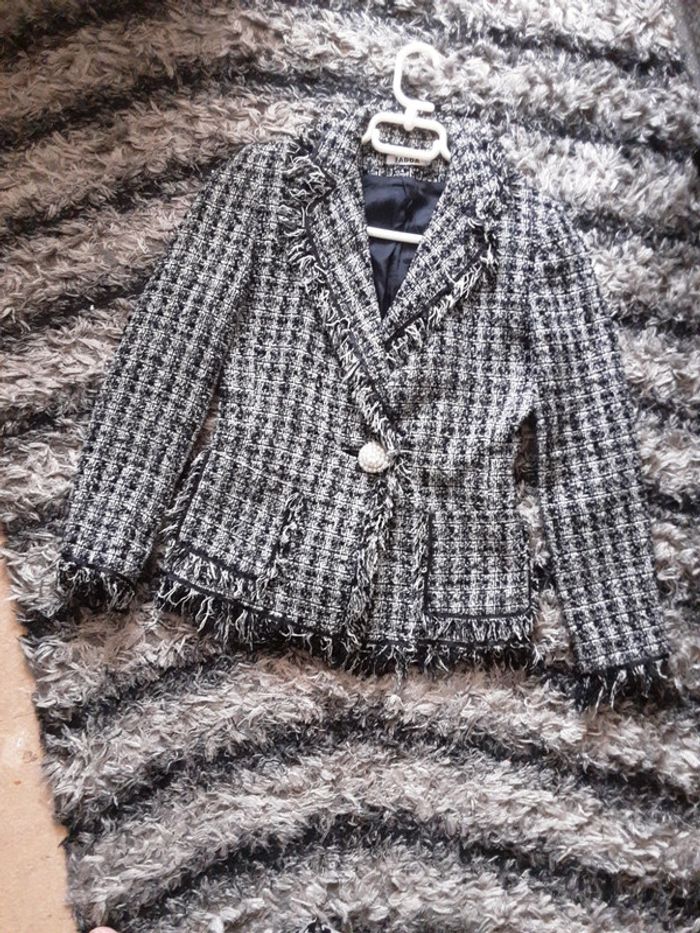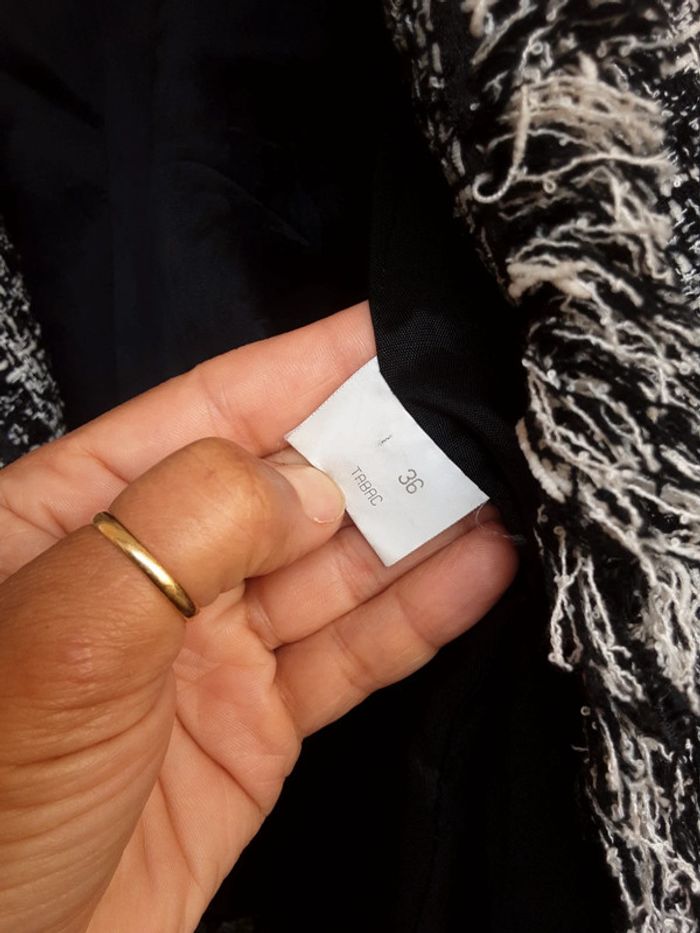 Très jolie! très classe avec le bouton en perle qui fait le bijoux de cette veste Très bon état extérieur et intérieur Taille 36 (je vous mets les mesure pour comparaison avec vos vêtements ) Dimension épaule : 38/39cm Dimension aisselles : 42cm Longueur :63cm