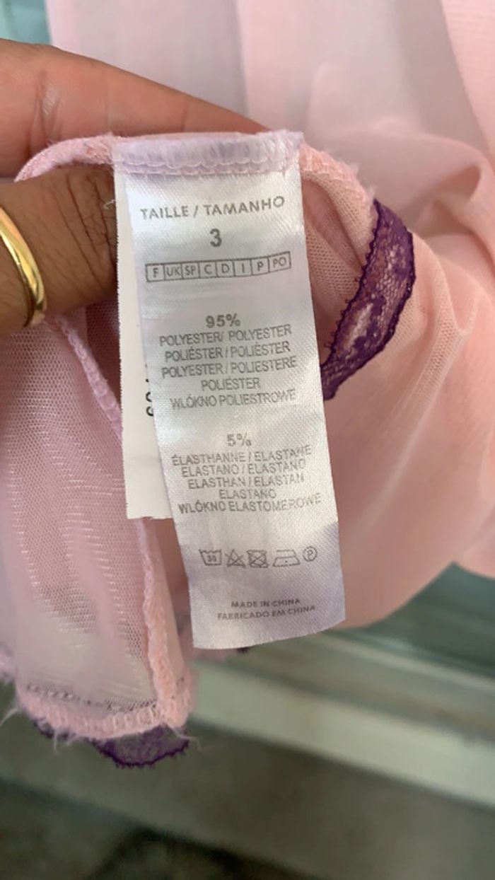 Très jolie nuisette Sur l’étiquette c’est écrit taille 3 Je la mettais je faisais du taille 38 et bonnet soutien-gorge 95B (pour pus donner une idée) Dimension aisselles : 38cm Longueur : 64cm Je peux vous offrir un string neuf (voir photo )