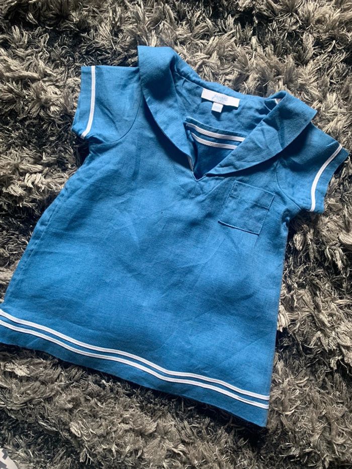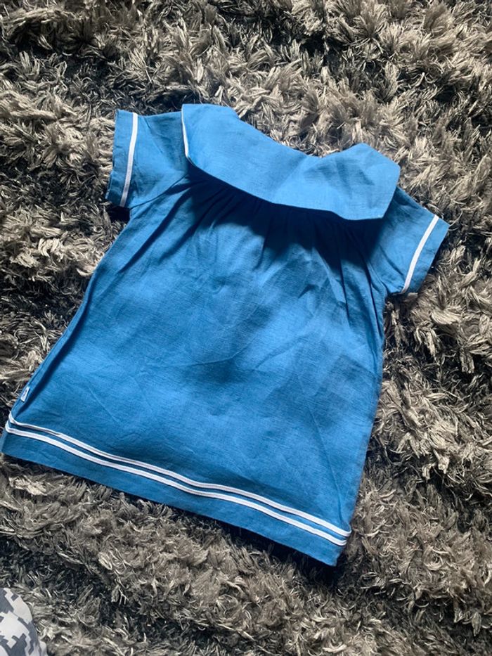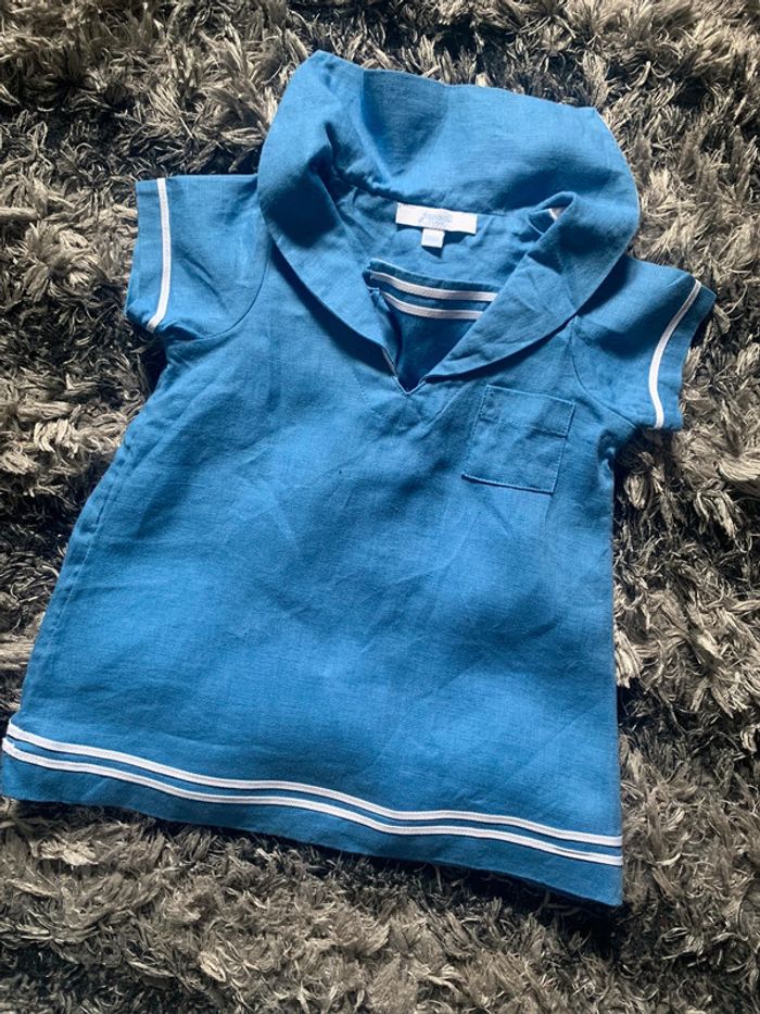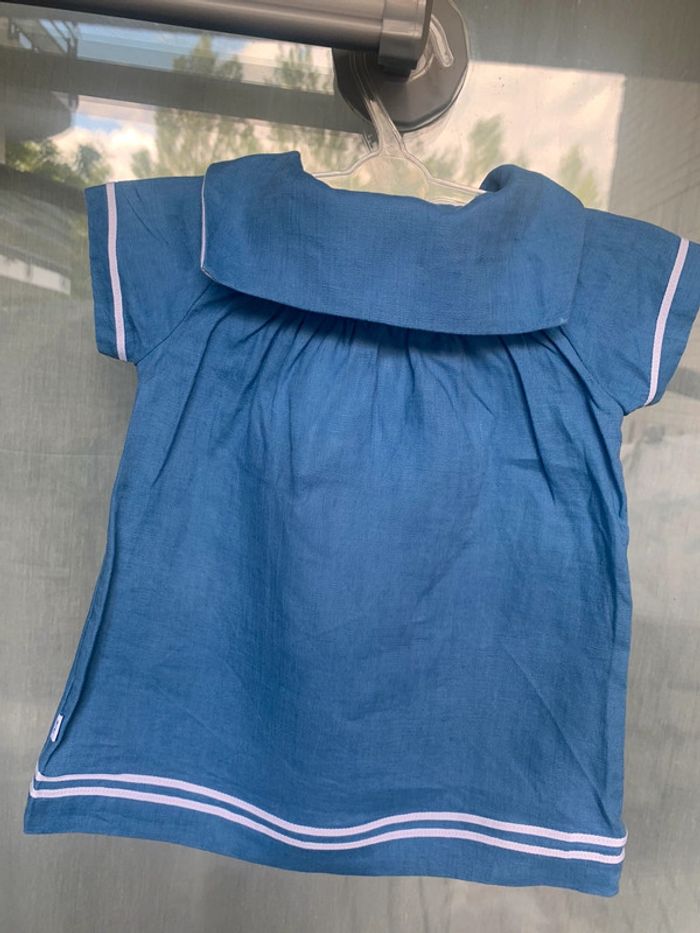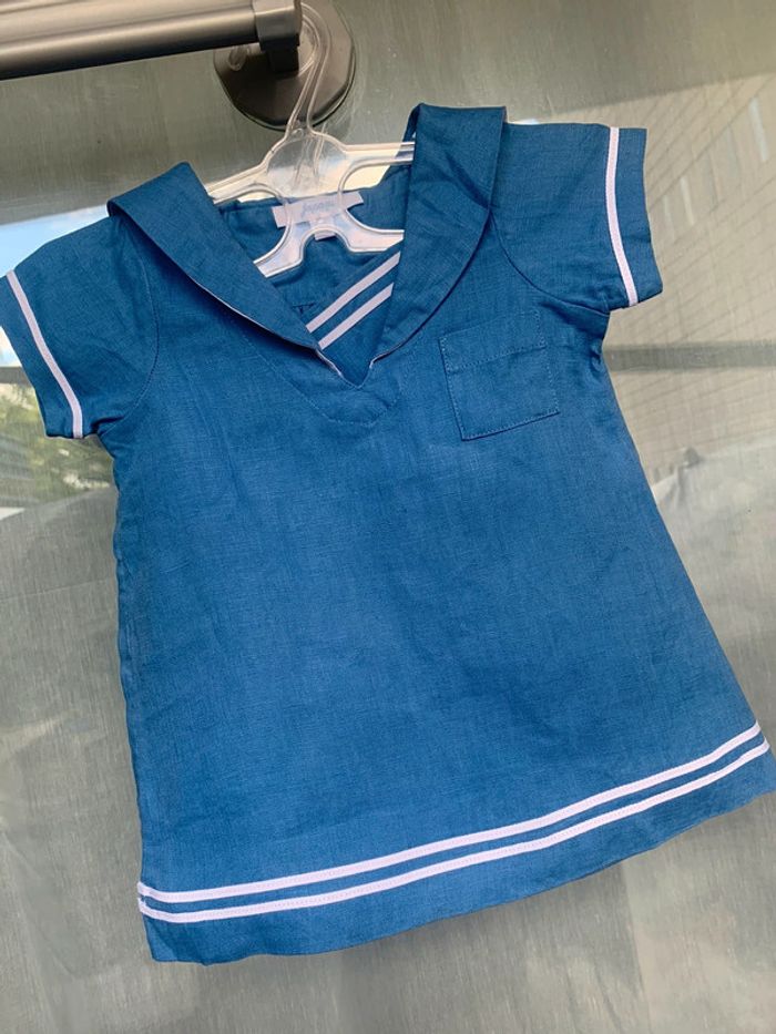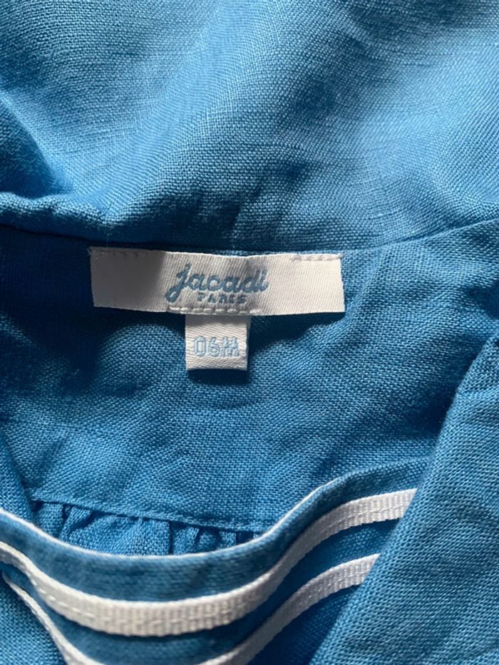 Jolie robe en lin de chez Jacadi Paris Taille 6 mois Couleur bleue ciel et blanc Étiquette coupée