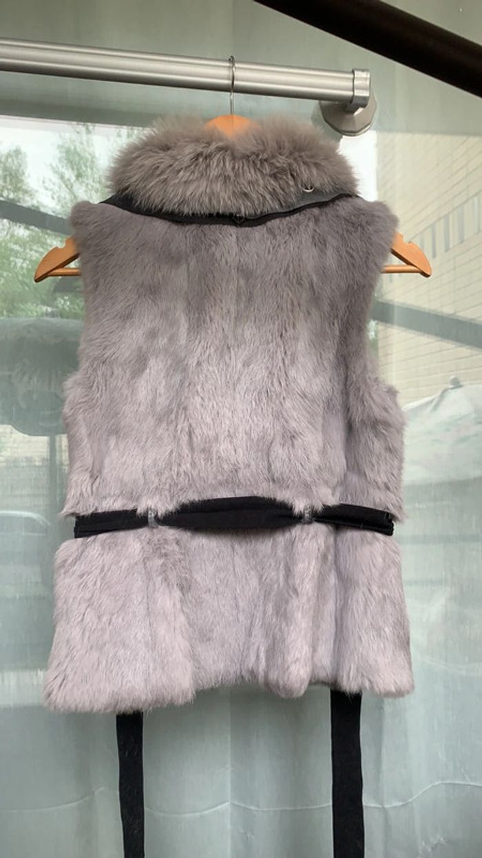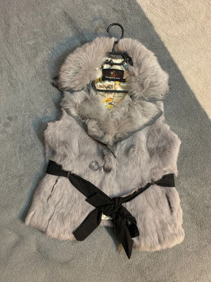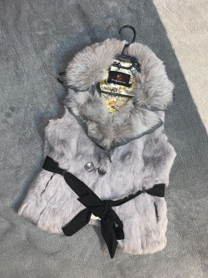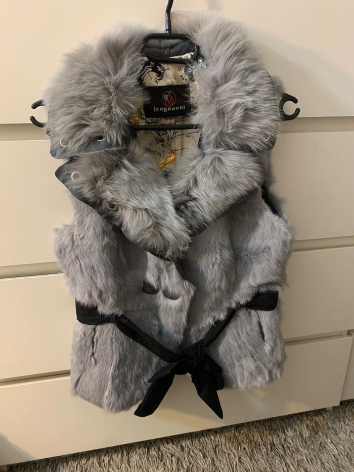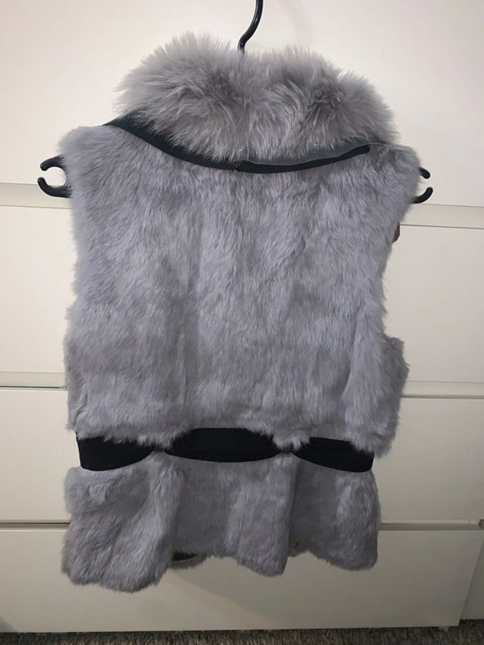 Veste sans manche fourrure avec 2 poches sur le côté à fermeture Très bon état car très peu portée Dimension aisselles : 45,5cm Longueur : 55cm emmener chez un couturier qui a enlevé tout le similicuir abîmé , là il est comme neuf