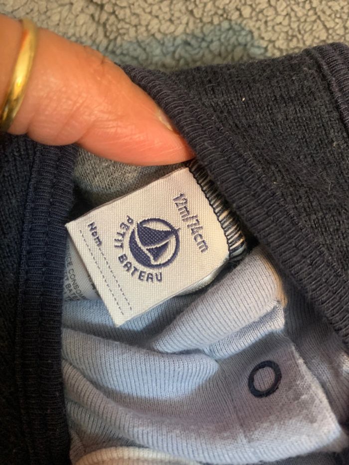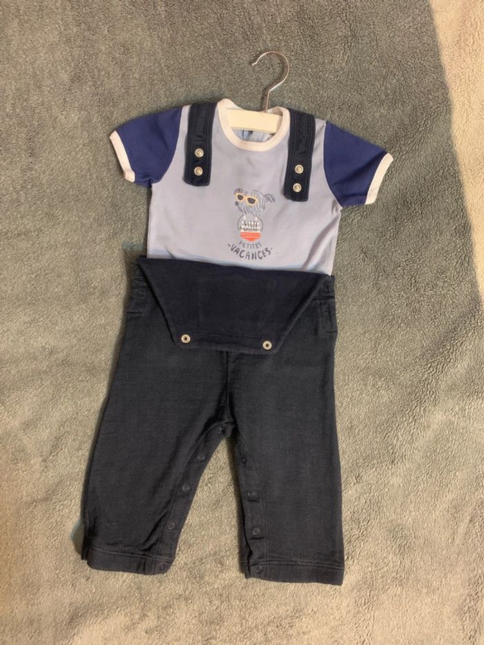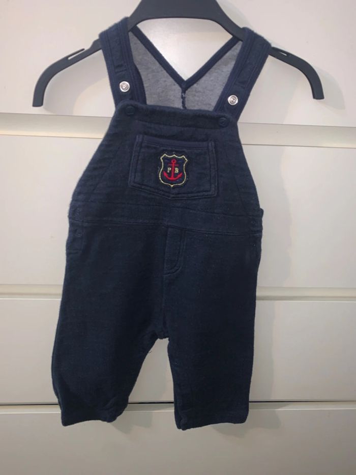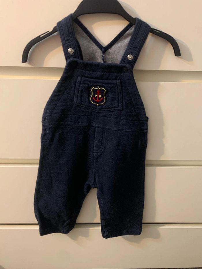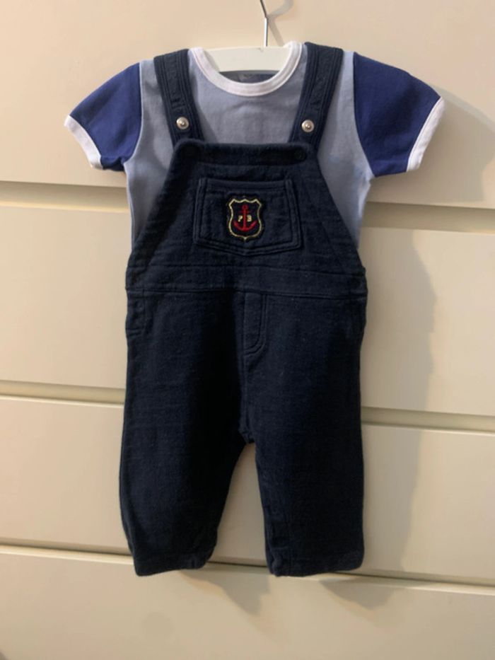 Salopette + tee-shirt, tissu confortable avec bretelles réglages et boutons pressions entrejambe pour un change pratique de l'enfant. Marque : petit bateau Taille : 12 mois (74cm) Couleur : bleu marine