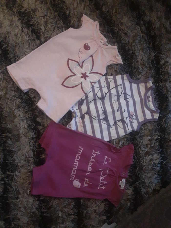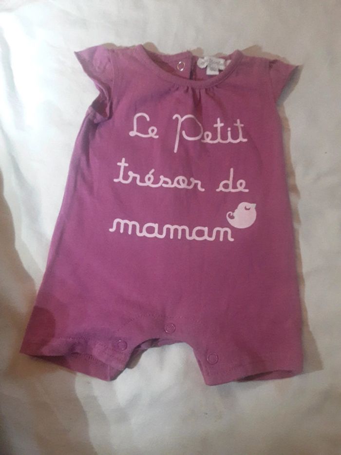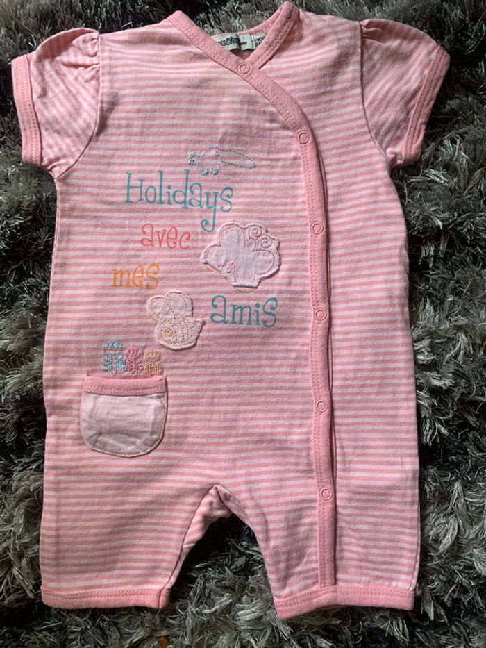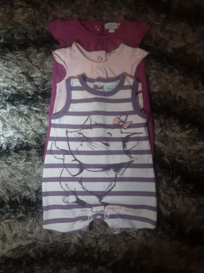 Lot de 5 combinaisons shorts (dont 1 offert, Voir dernière photo) 100% coton Taille : 0 mois Dimensions aisselles : 18/19cm Dimensions épaules : 14/15cm Longueur du haut en bas : 31cm Taille : 1 mois Marque : Disney /Petit Kimbaloo et Tape d’œil