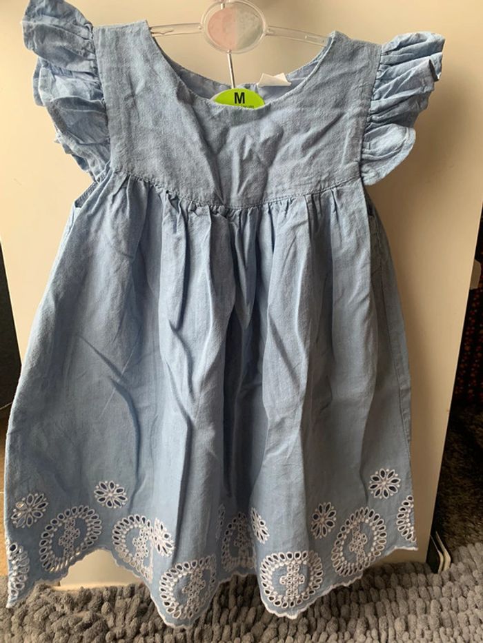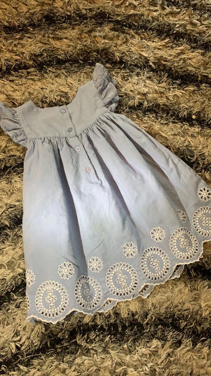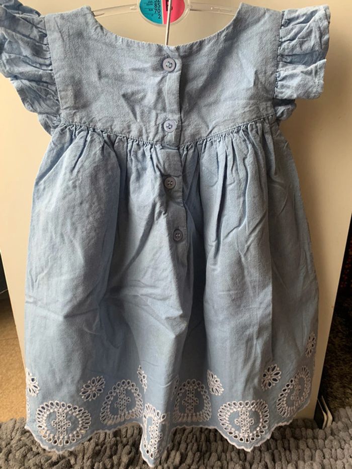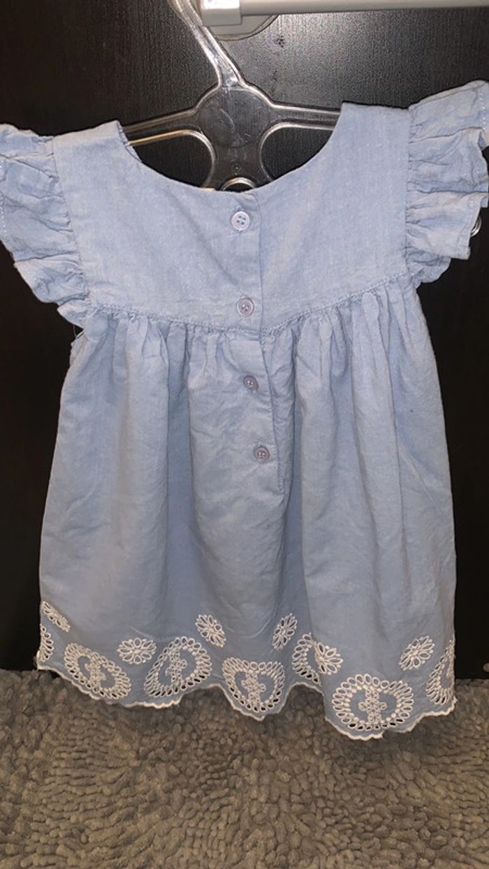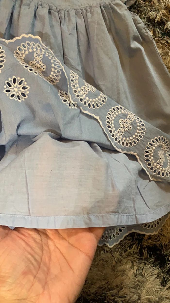 Très jolie robe fille avec broderie sur le bas 100% coton Taille : 12 mois (74cm) Couleur : bleu ciel