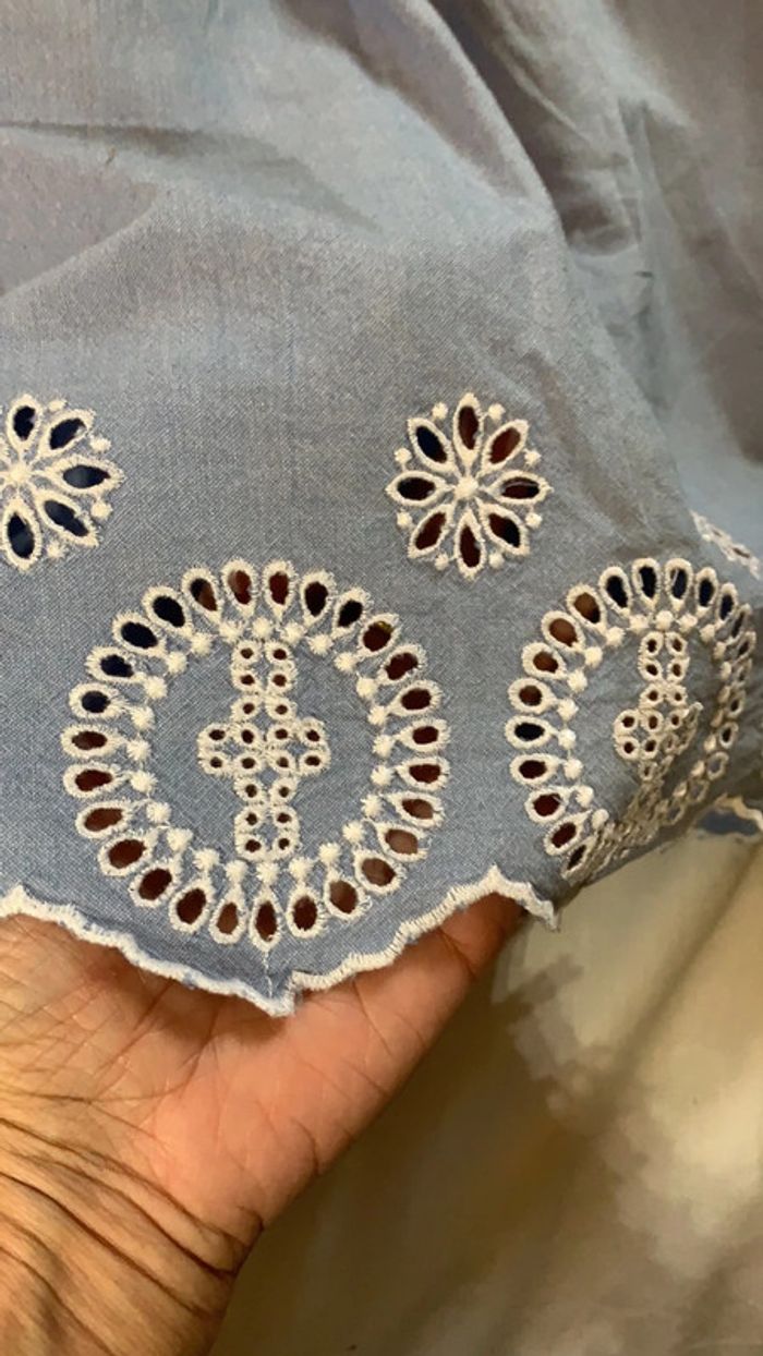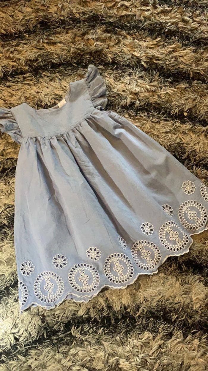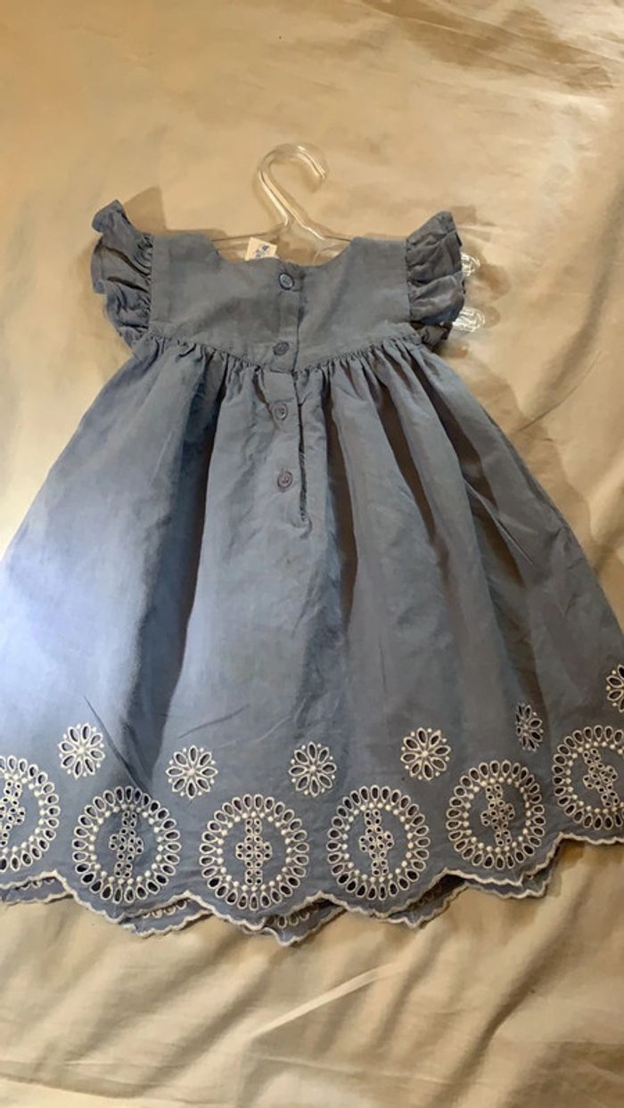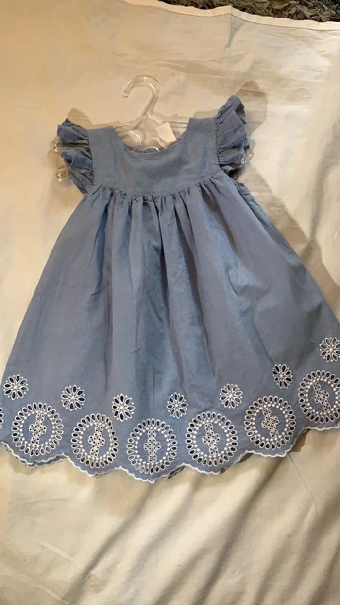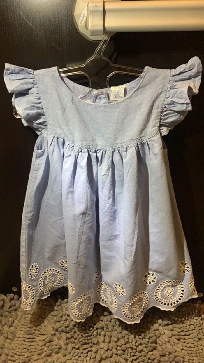 Très jolie robe fille avec broderie sur le bas 100% coton Taille : 12 mois (74cm) Couleur : bleu ciel