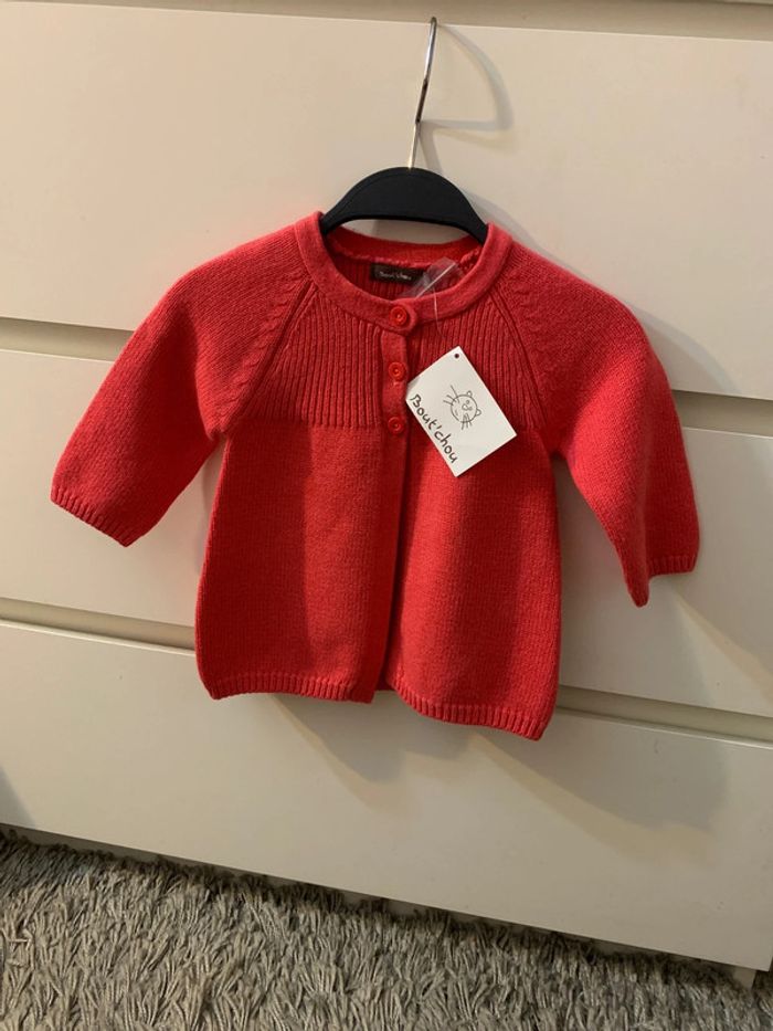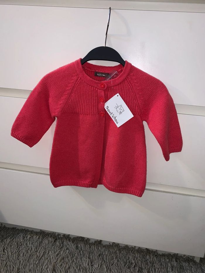 Je vends ce gilet laine bébé fille (neuf) 79% coton et 21% laine Taille : 12 mois (74cm) Couleur : rose Marque : bout'chou
