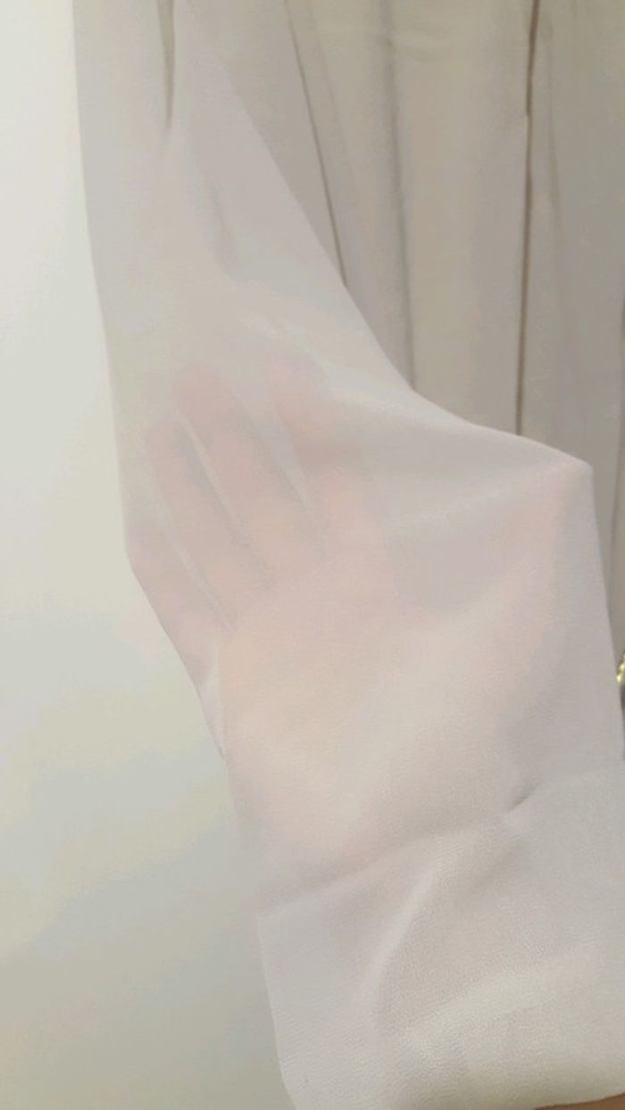 Vends joli haut avec manche transparente, très chic. Très peu porté. Existe en coloris noir également. Fabriqué en France Couleur : blanc cassé (existe en noir ) Taille unique