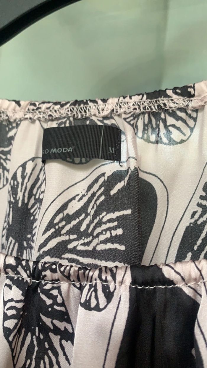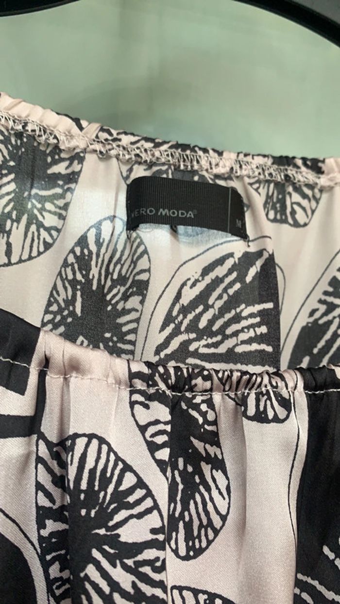 Bonjour 😊 Je vends ce joli haut type soie/ satin Peut se porter de 2 façons (sur les épaules ou sous ) Taille : M Marque : vero Moda Couleur : noir et ??